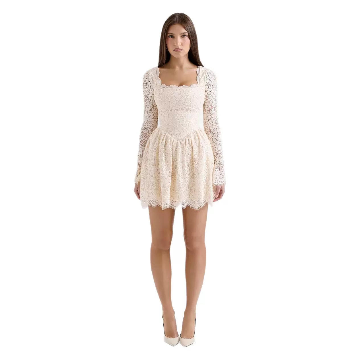 欧美时尚气质优雅性感蕾丝裙一字领大摆连衣裙长袖公主裙基本款
