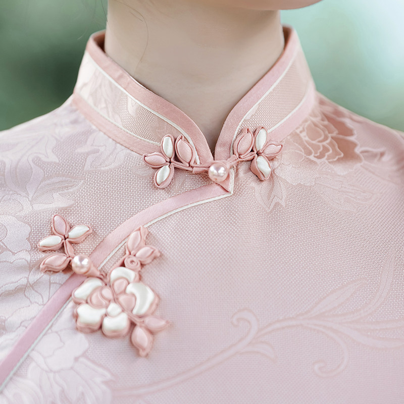 旗袍2025夏季新款女粉色年轻款真丝高端桑蚕丝中国风改良日常可穿