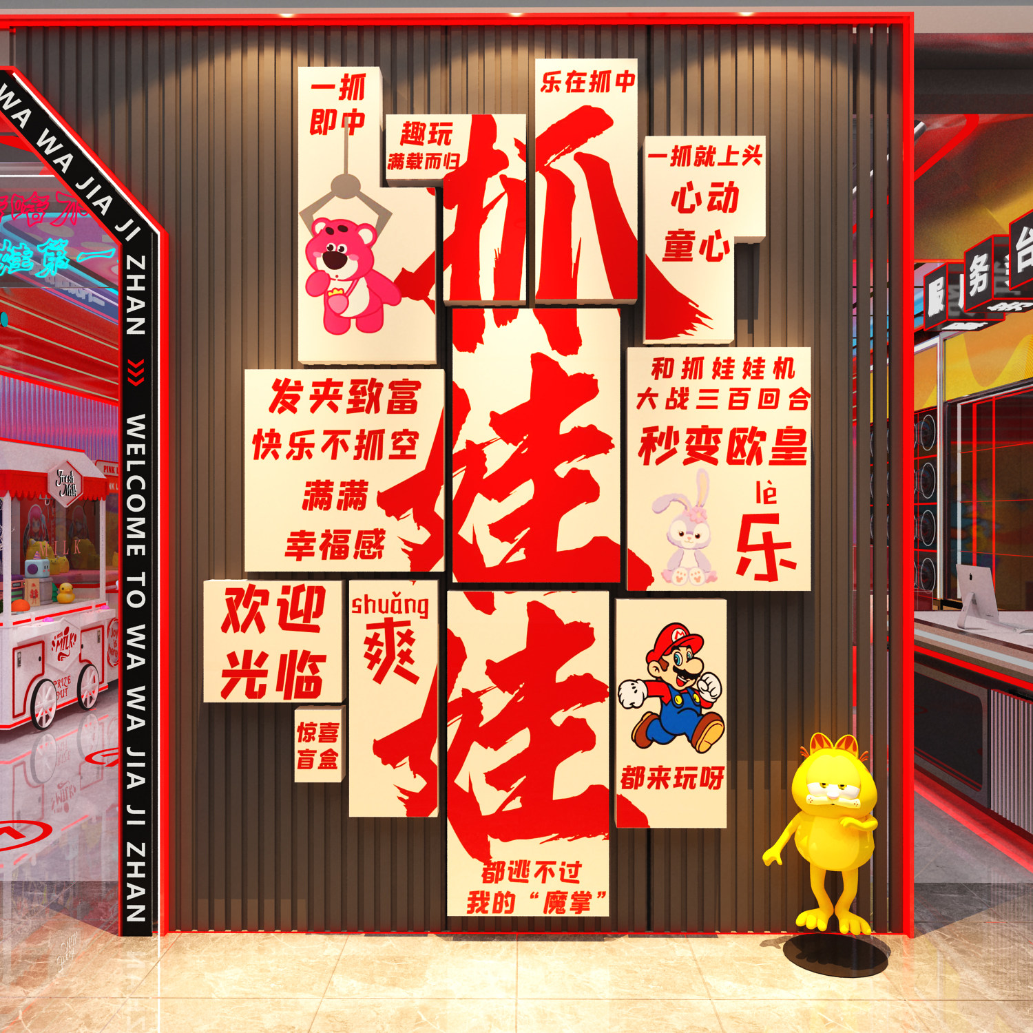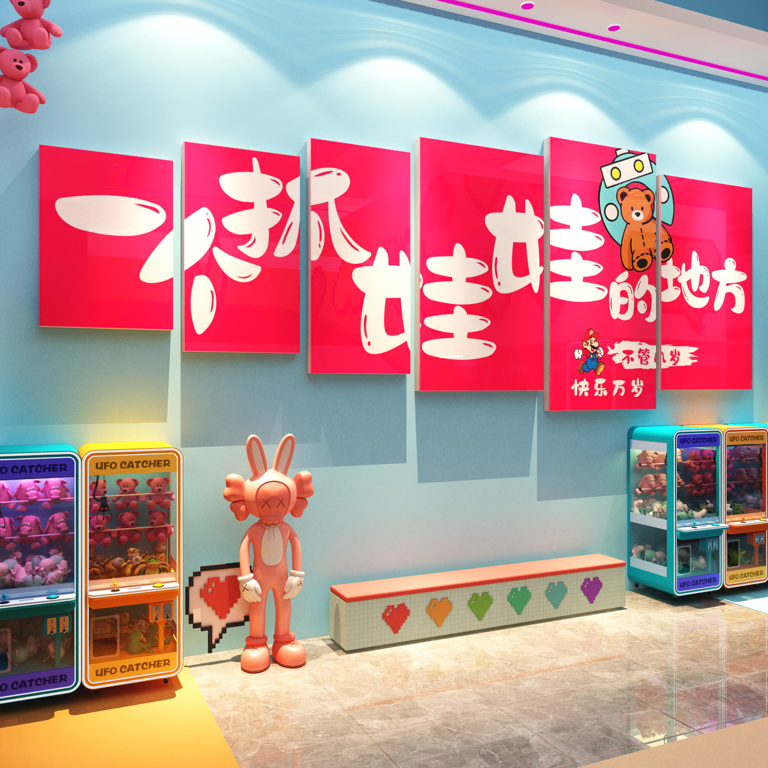 电玩城打卡墙面装饰抓娃机店海报氛围布置游戏厅顶部蜡笔小新贴纸