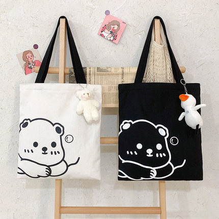 ins帆布包女单肩2021新款大容量韩版学生包百搭多用购物袋可定制