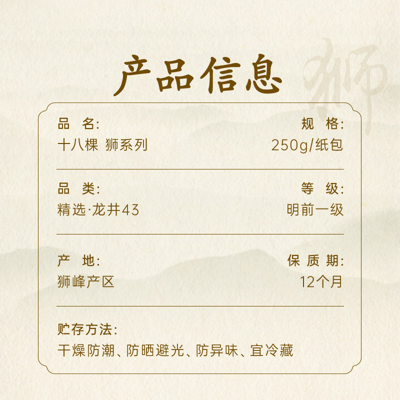 26年春茶预售 十八棵 狮02 明前一级 狮峰西湖龙井绿茶 250g纸包