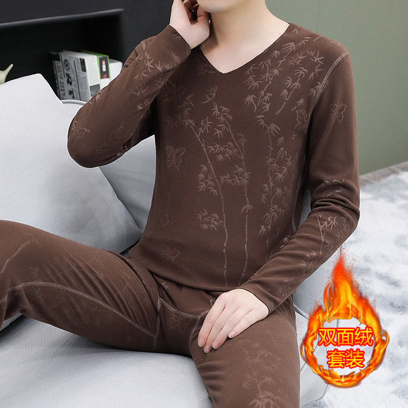 德绒V领保暖内衣男士2025新款冬季薄款内搭男款无痕秋衣秋裤套装
