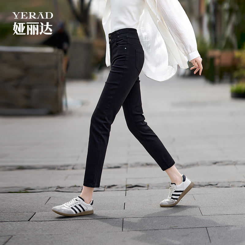 娅丽达防褪色小脚牛仔裤女高弹力高腰裤子2025秋季新款九分铅笔裤