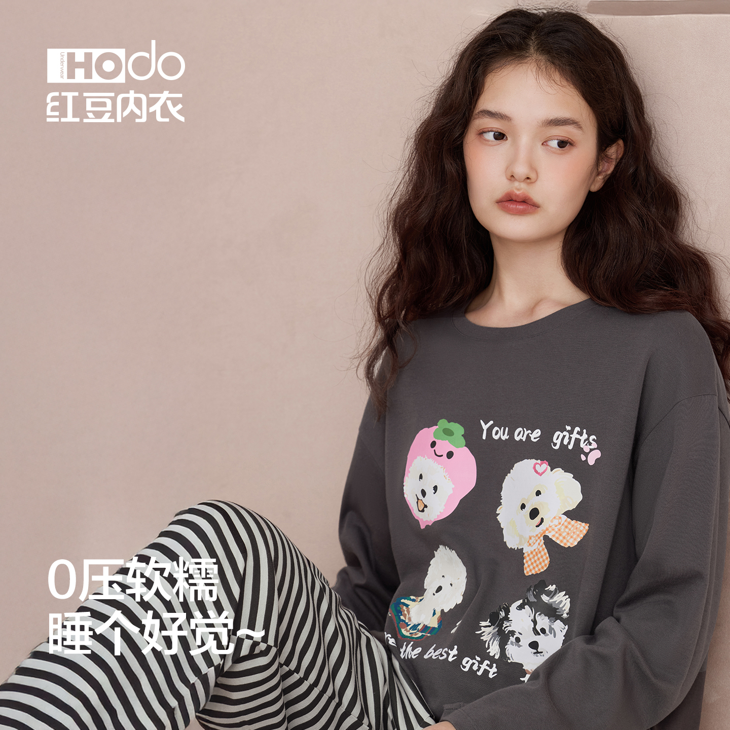 红豆女纯棉卡通印花A类睡衣