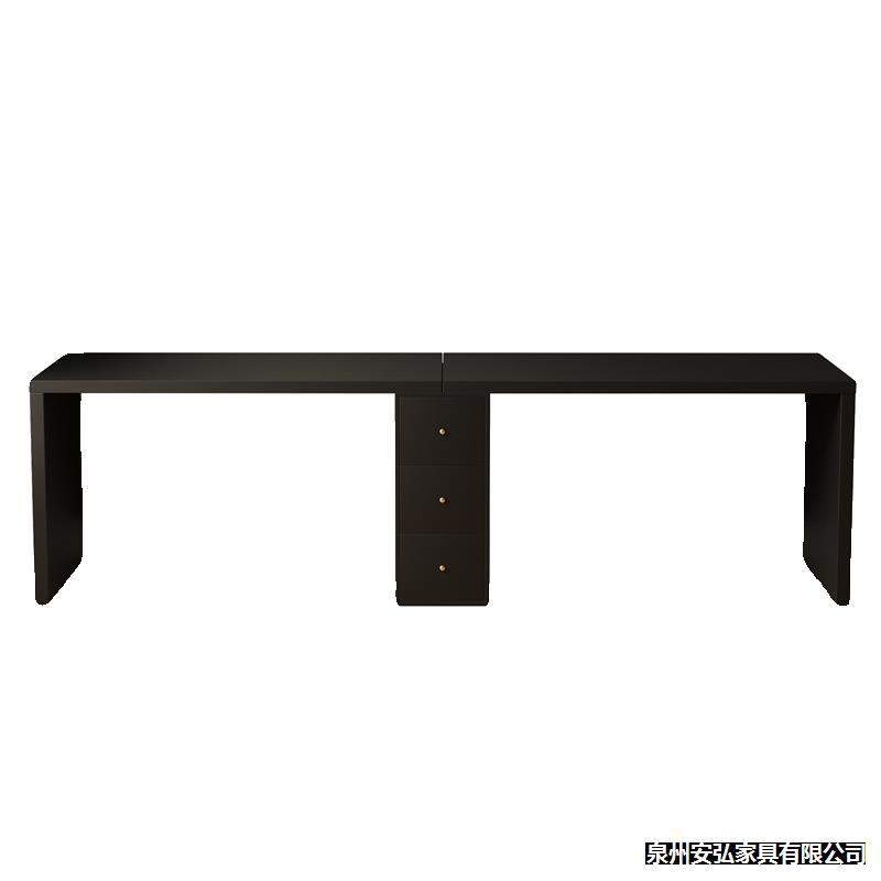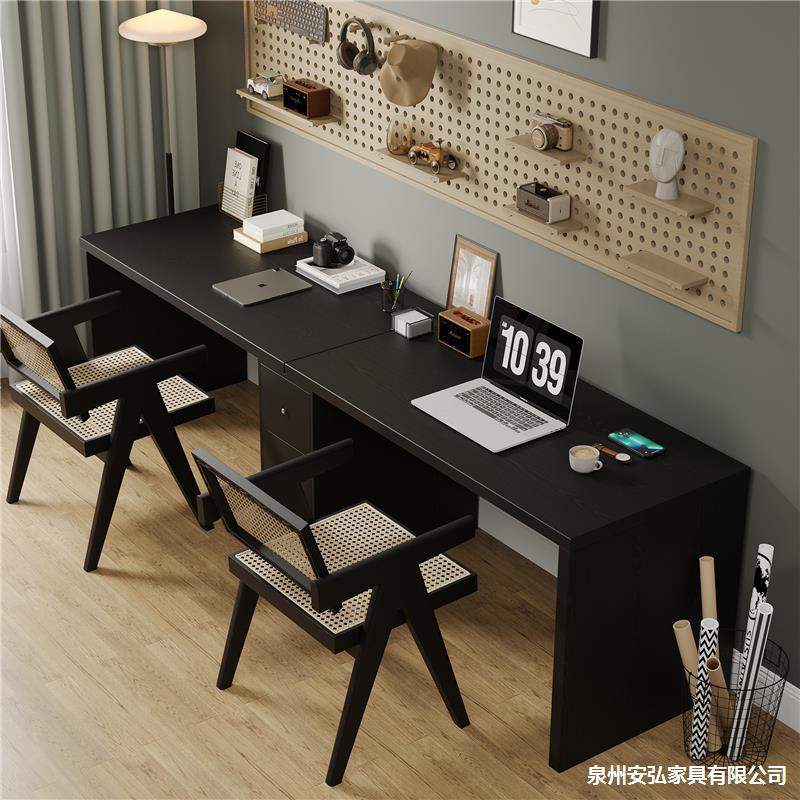 黑色实木书桌3米超长双人写字桌家用电脑桌卧室简易办公桌带柜子