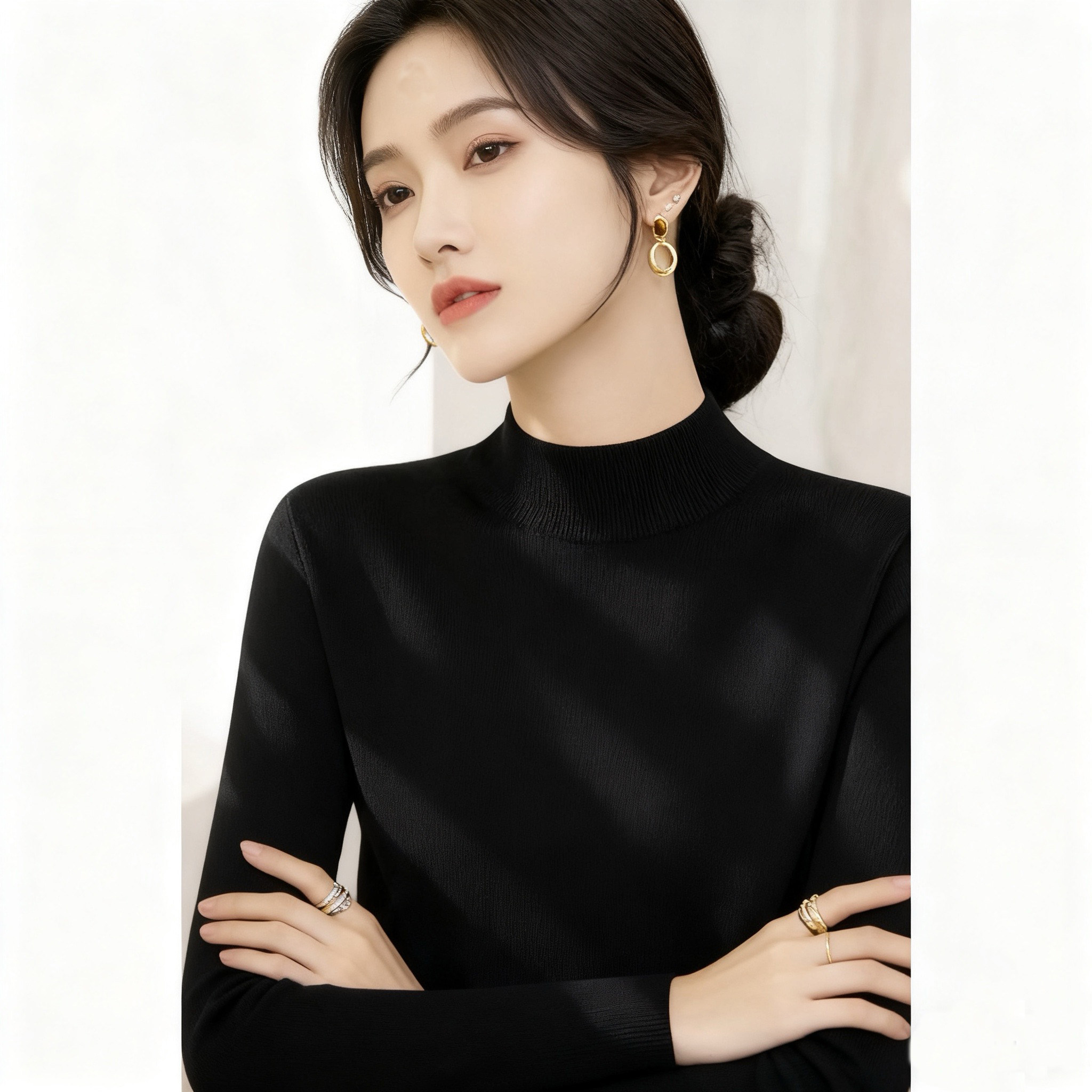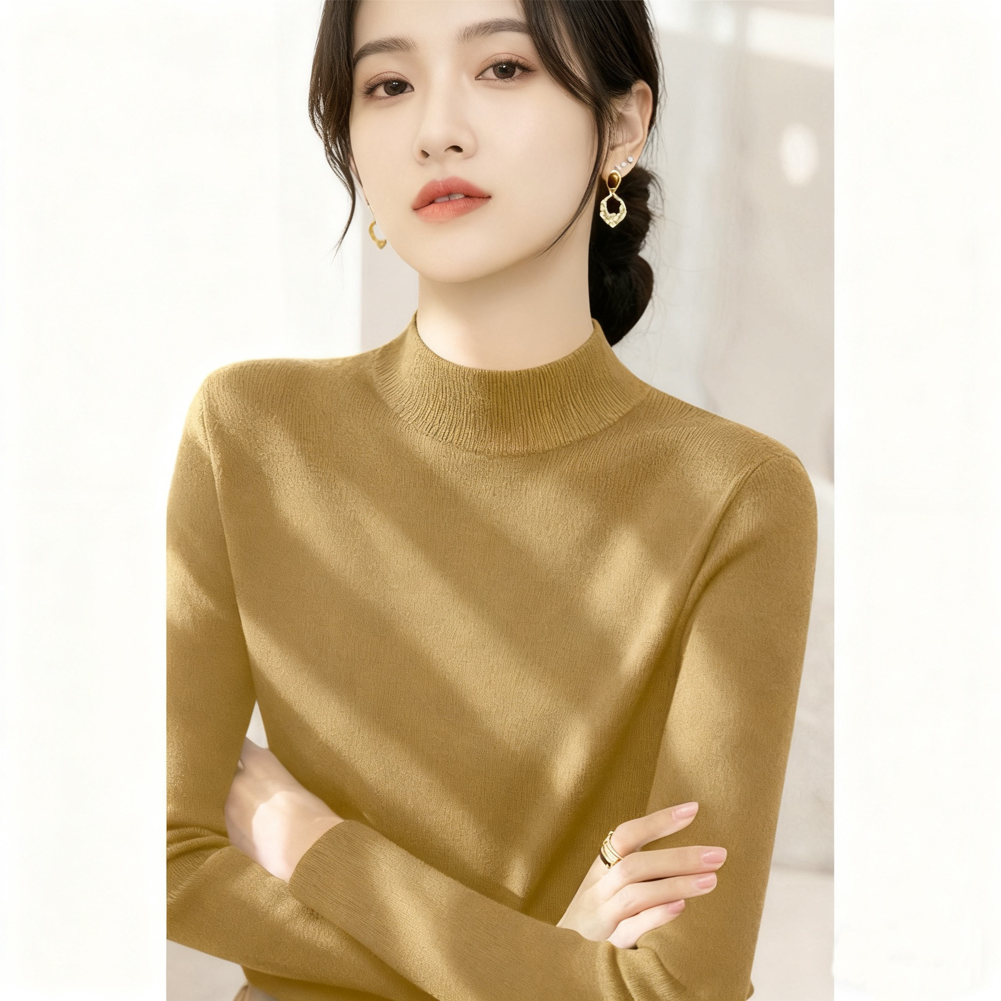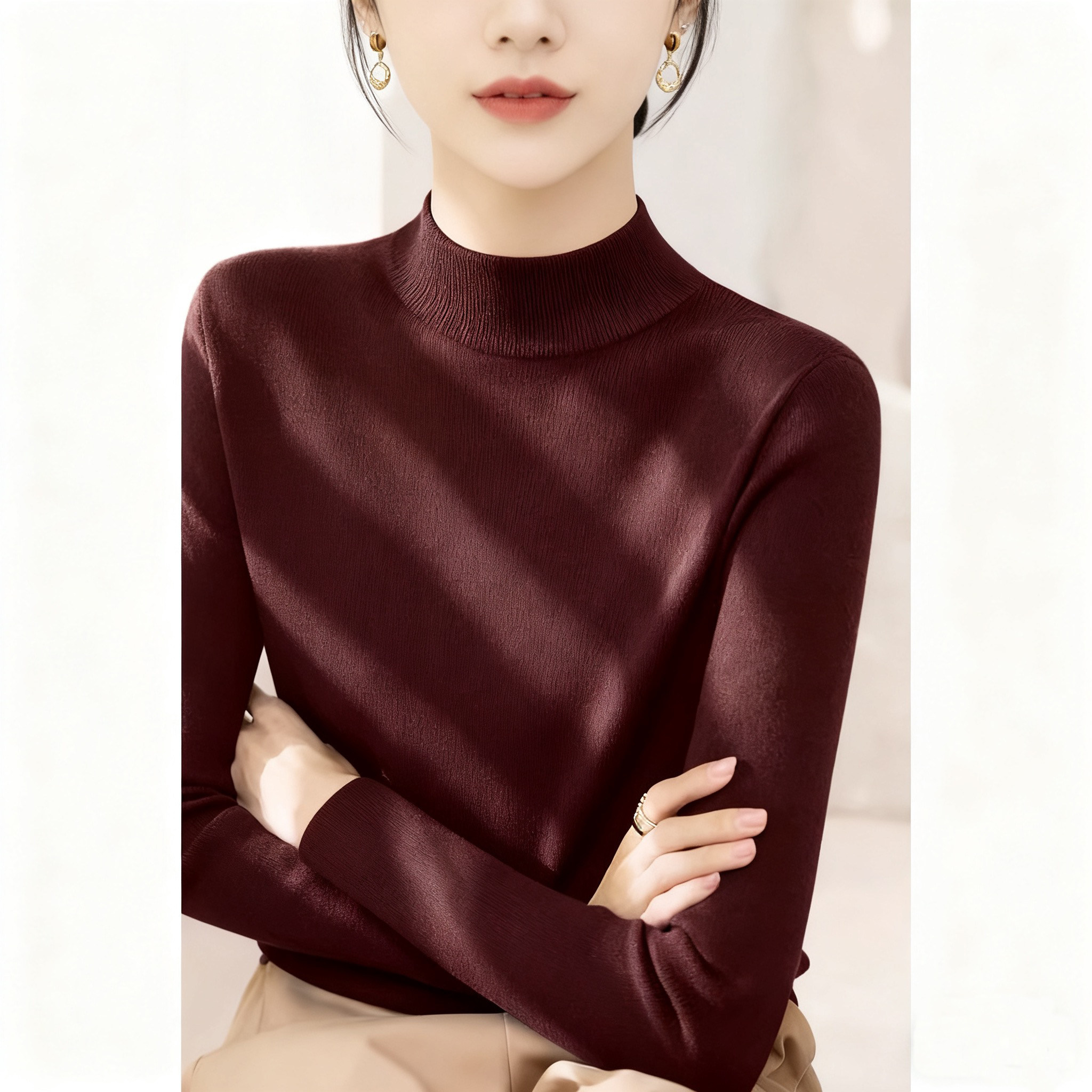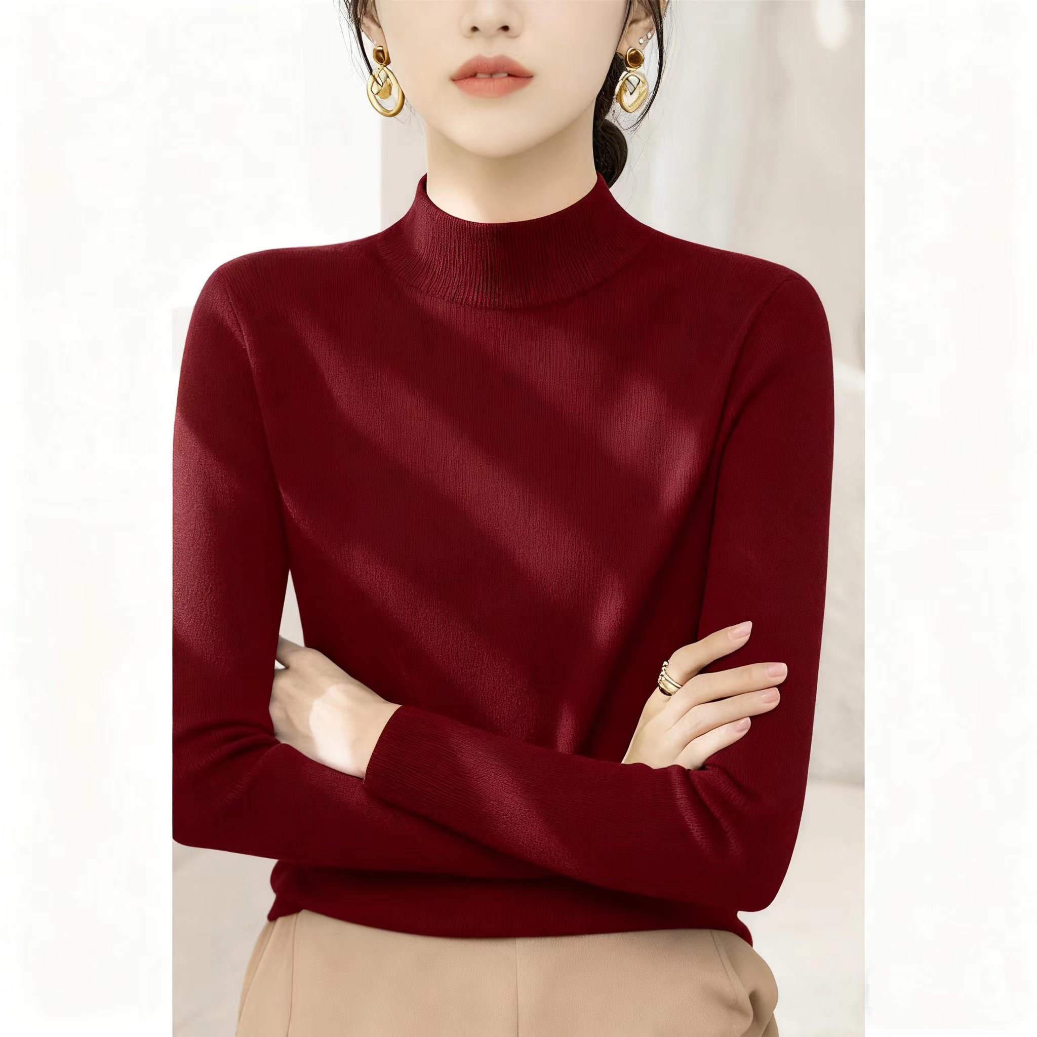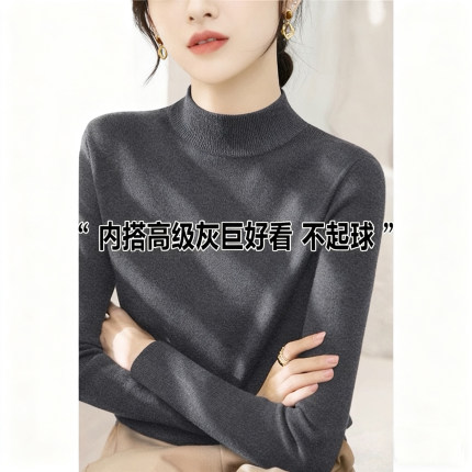 秋冬2025新款半高领内搭修身打底毛衣女装法式高级灰色长袖针织衫