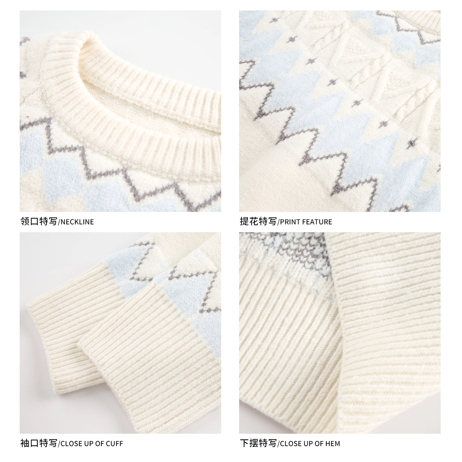复古白色费尔岛套头毛衣男女