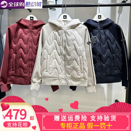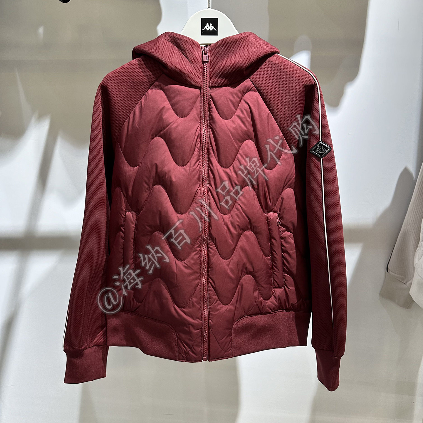 卡帕Kappa女背靠背2025冬新款运动休闲连帽防风羽绒服K0F82YY29