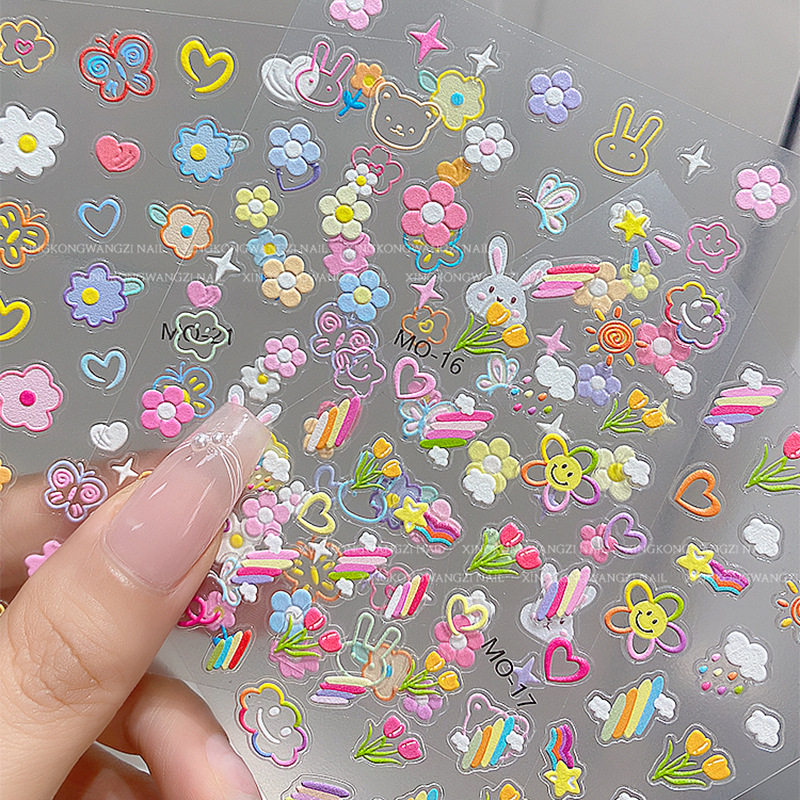 儿童指甲贴女孩美甲贴纸宝宝2026新款立体浮雕多巴胺女童软自粘小朋友指甲贴小女孩公主防水小孩幼儿指甲贴画