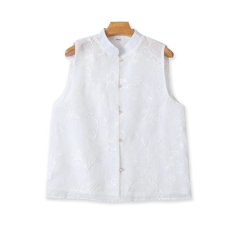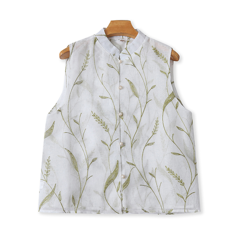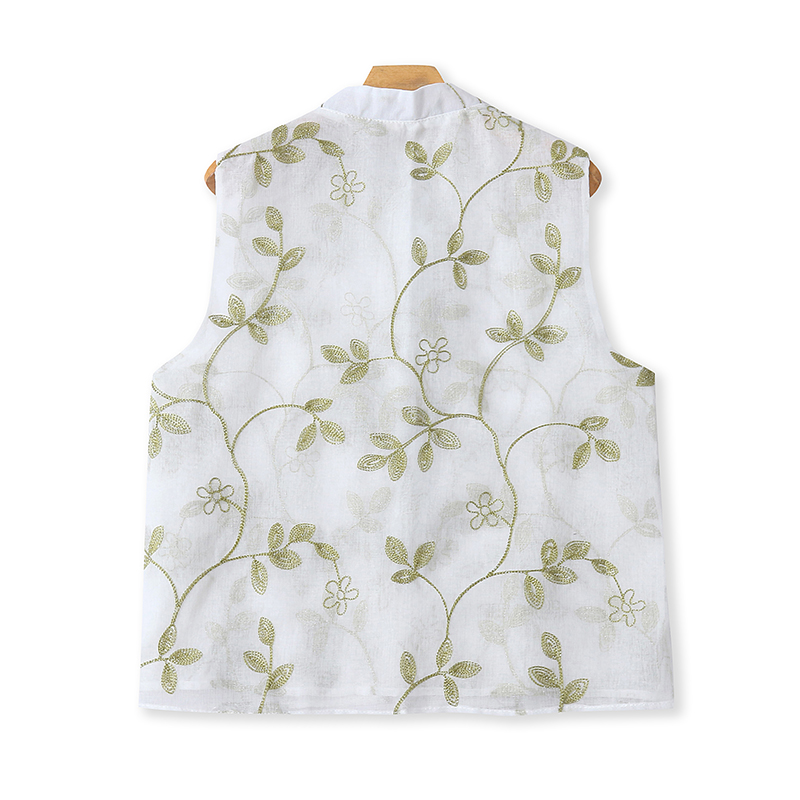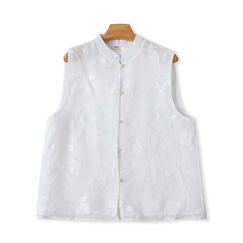新中式国风立领刺绣马甲 春秋新款纽扣开衫无袖时尚女装背心07563