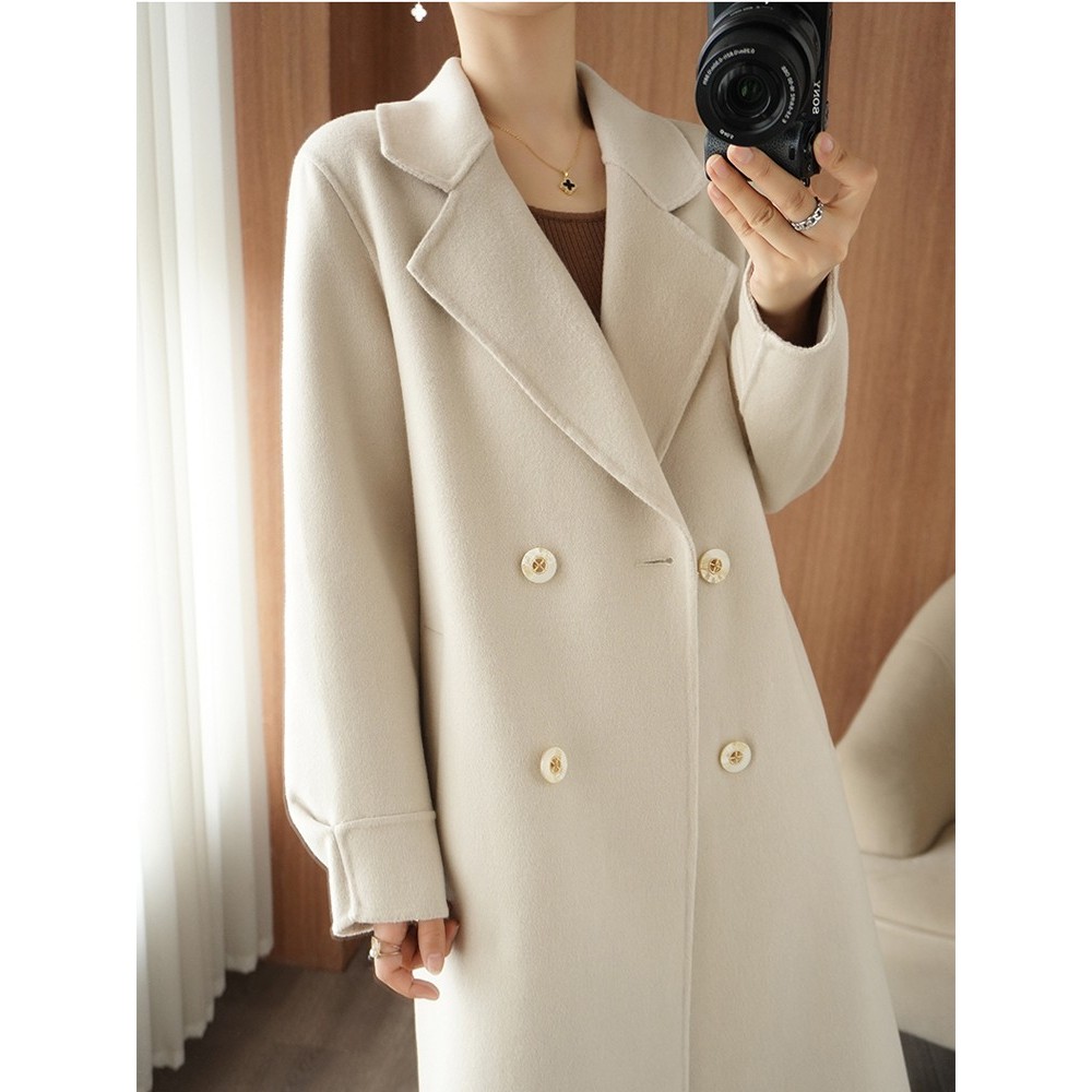 秋冬中长款双面羊绒大衣女100%澳洲纯羊毛百塔气质洋气毛呢外套