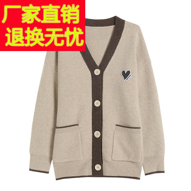 羊毛针织开衫宽松早秋装新款加厚女士毛衣外套春秋外搭披肩羊绒衫