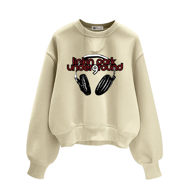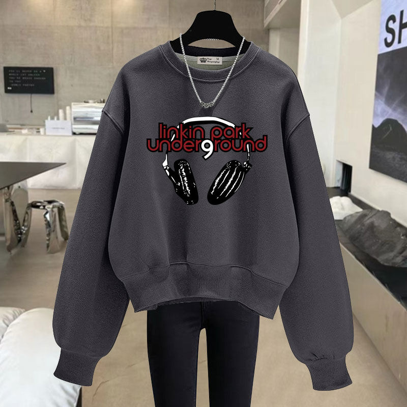 耳机字母圆领短款卫衣女2025春秋冬宽松慵懒风加绒加厚长袖套头潮