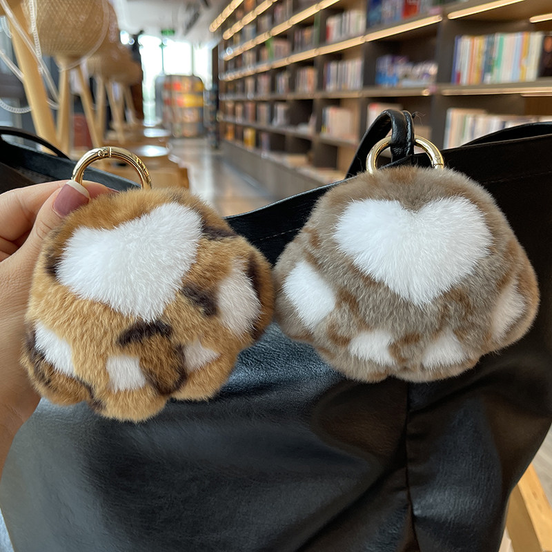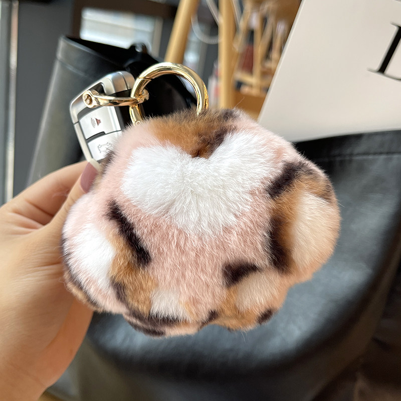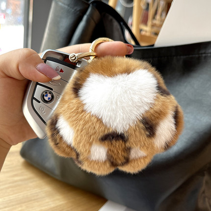 獭兔毛猫爪汽车钥匙扣皮草挂件可爱毛绒球书包包挂饰时尚生日礼物