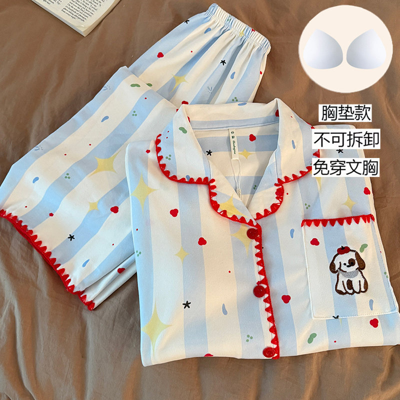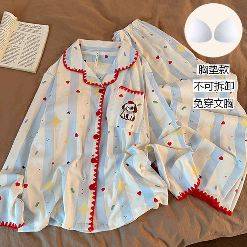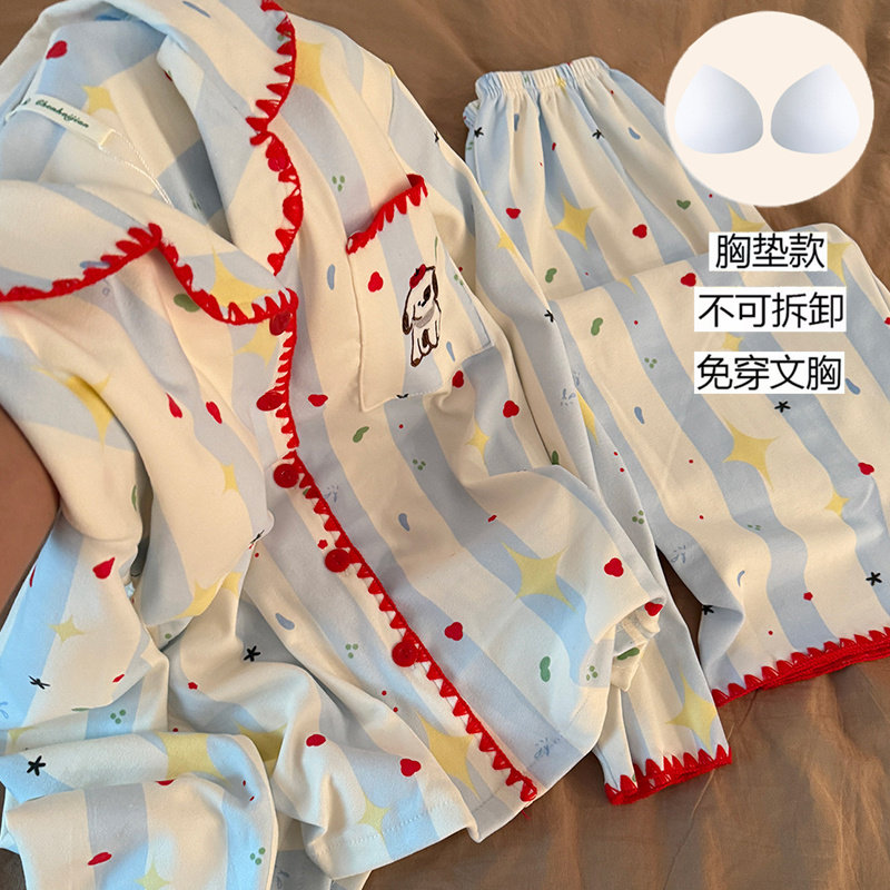 『长袖带胸垫款』云朵棉2026新ins卡通睡衣女春秋大码冬季家居服