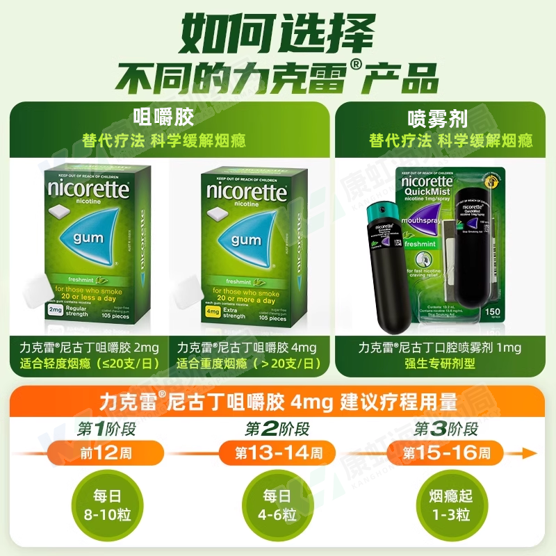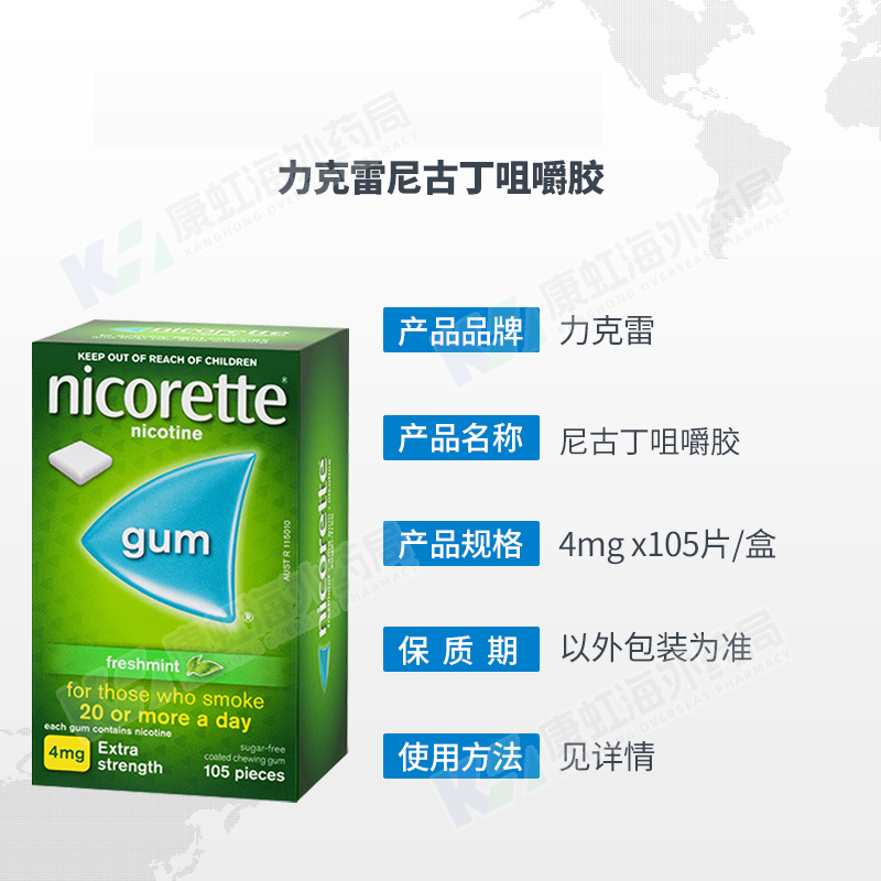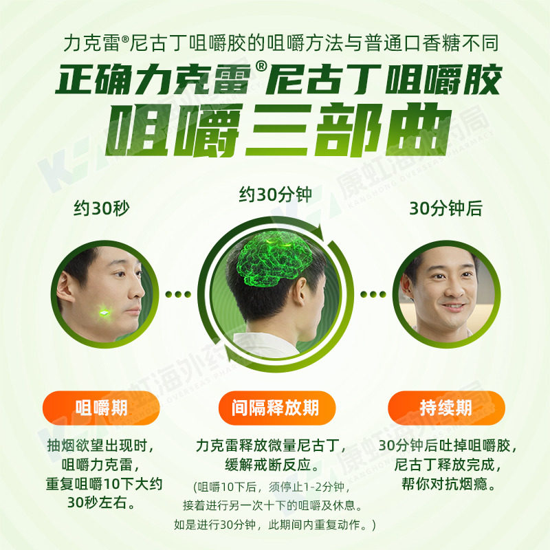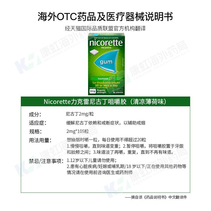 原装强生力克雷Nicorette尼古丁戒烟口香糖代替品戒烟神器正品药