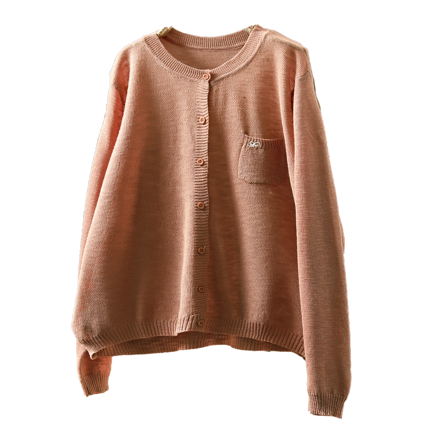 纯色亚麻针织衫外搭开衫女士2025早秋新款宽松休闲单排扣长袖上衣