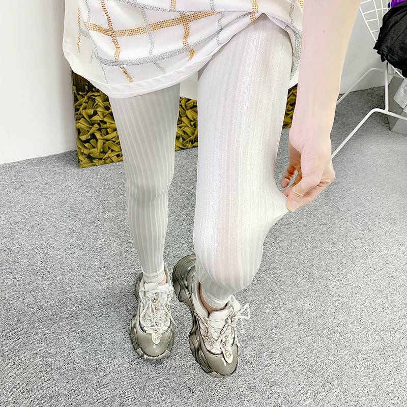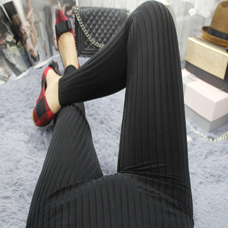 弹力九分裤外穿打底裤显瘦高腰竖条弹力个性百搭坑条小脚紧身裤女