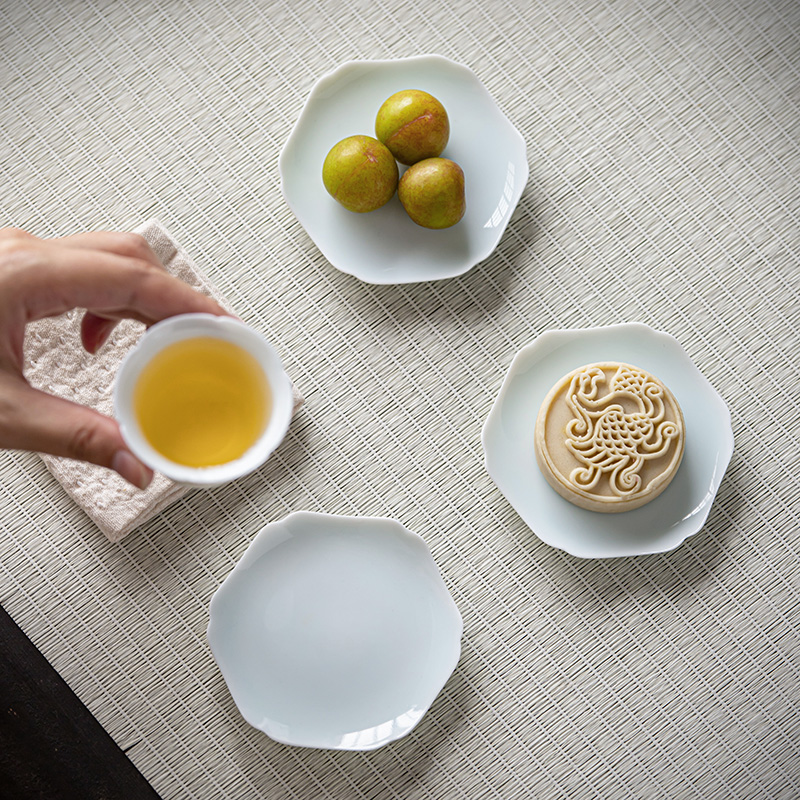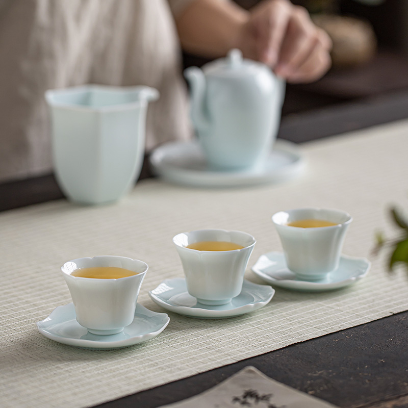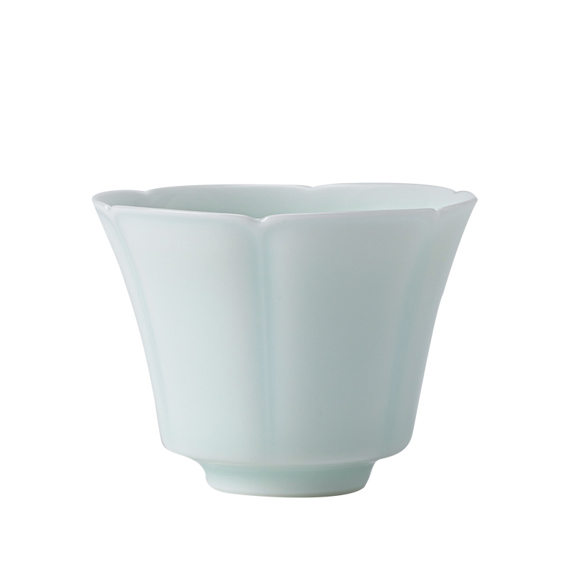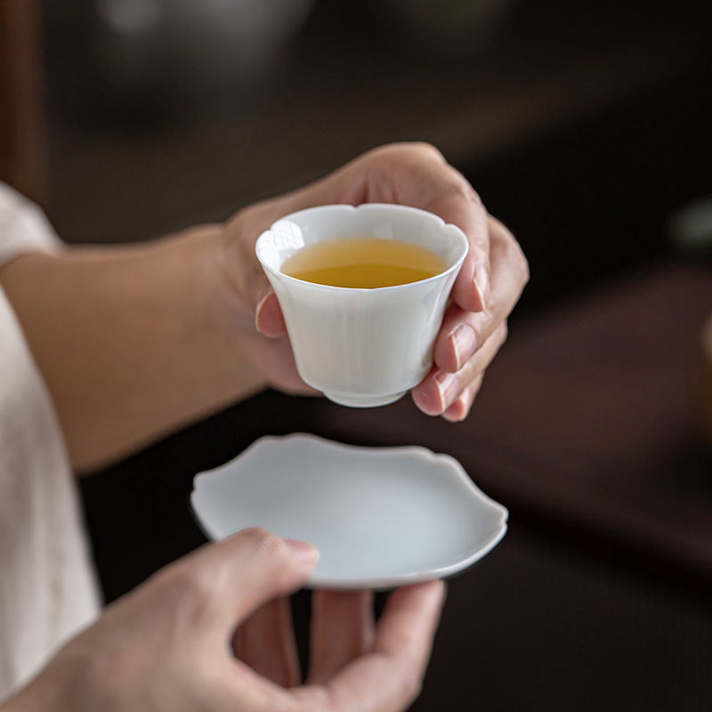 陶瓷花型口小茶杯功夫茶具带杯垫品茗杯湖田窑影青瓷喝茶主人单杯
