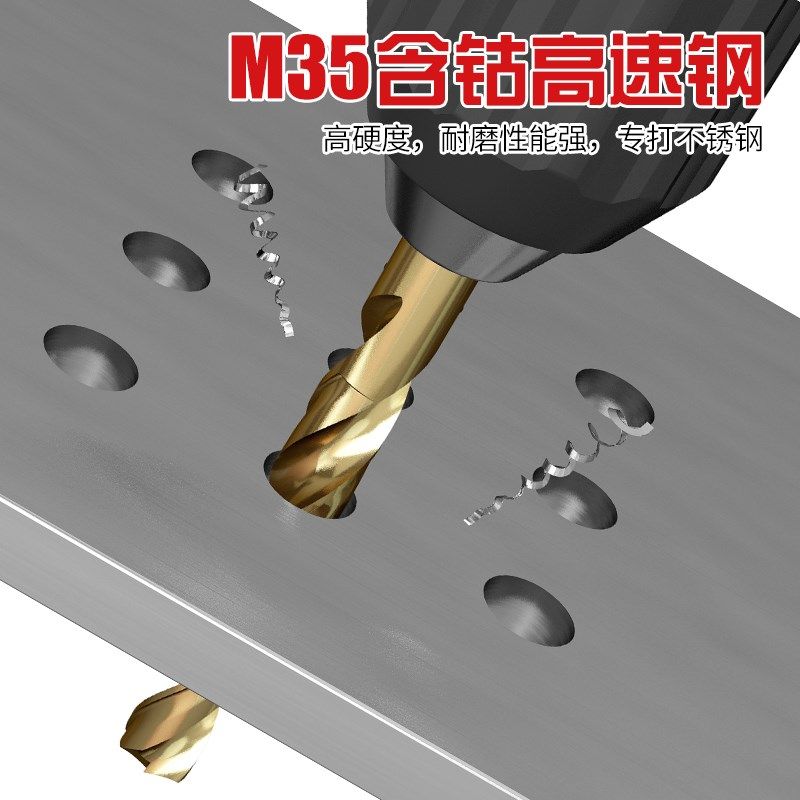 贝利含钴麻花钻头不锈钢板专用高硬度直柄手电钻打孔转头大全套装