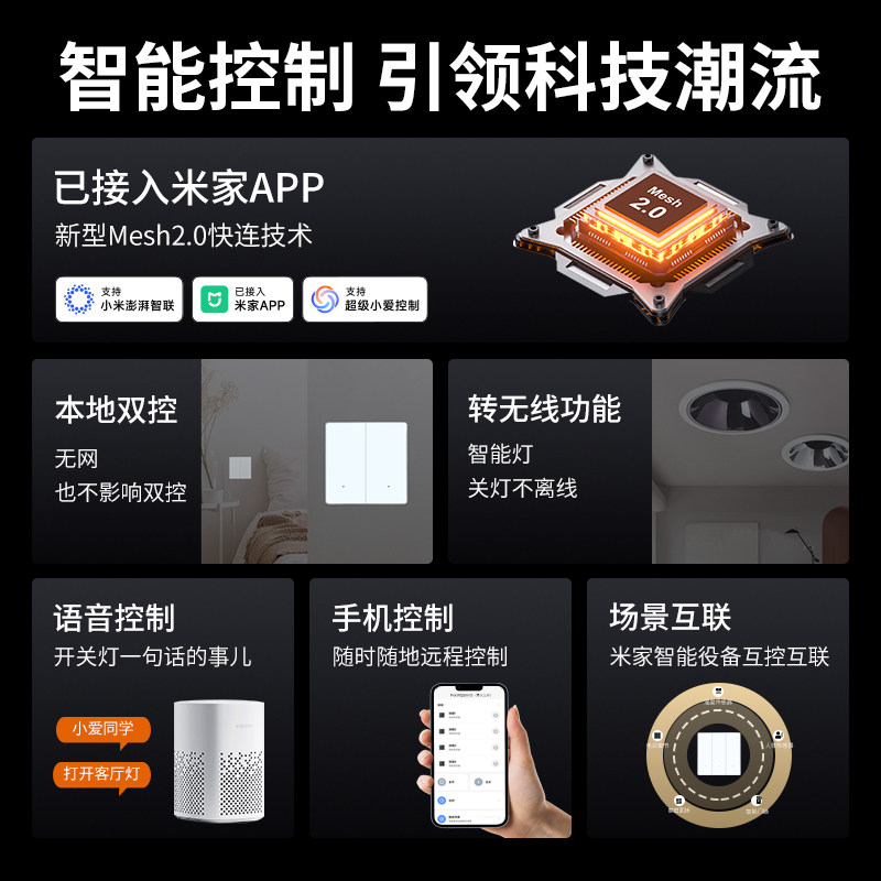 德力西智能开关面板全屋语音控制玻璃双控已接入米家APP单零火版