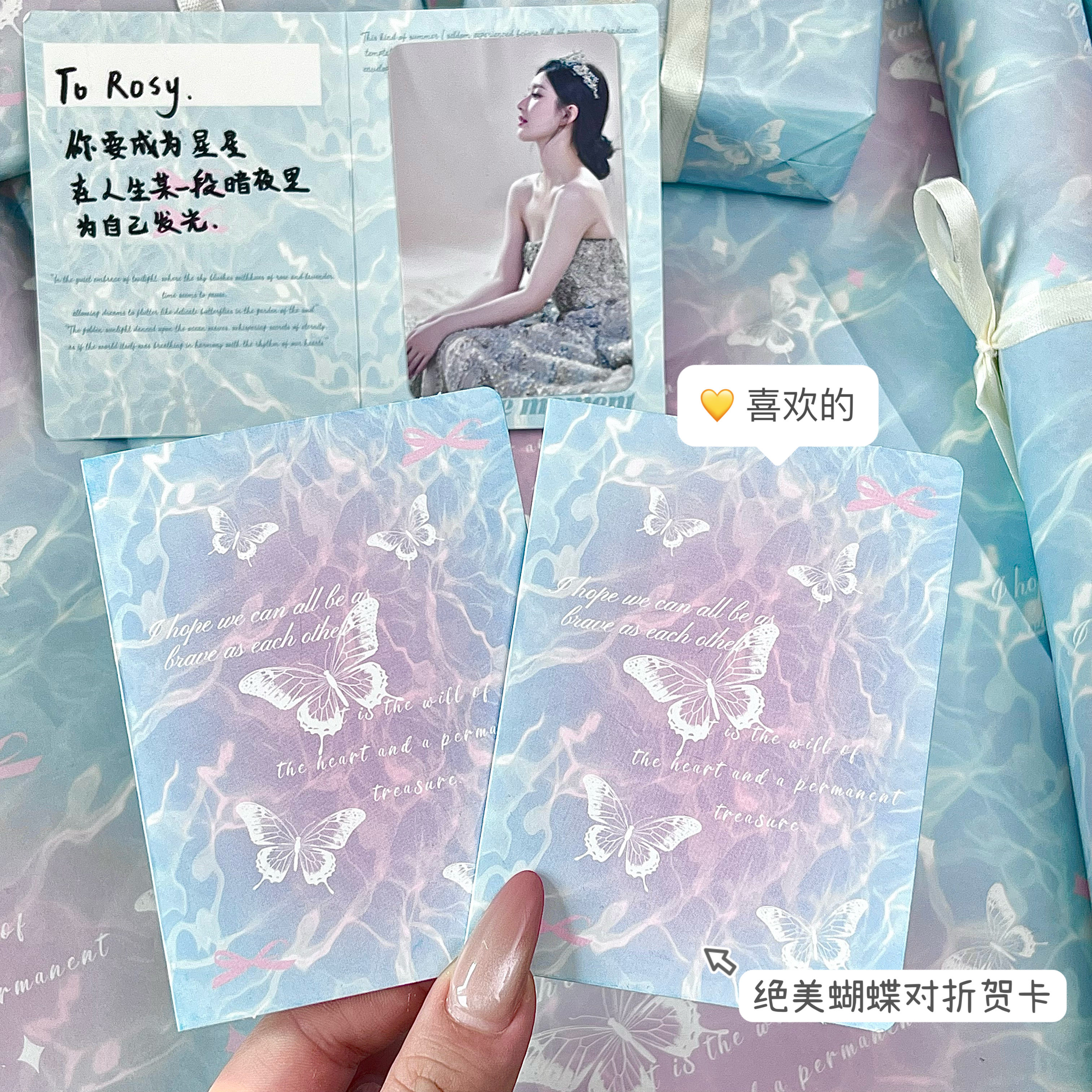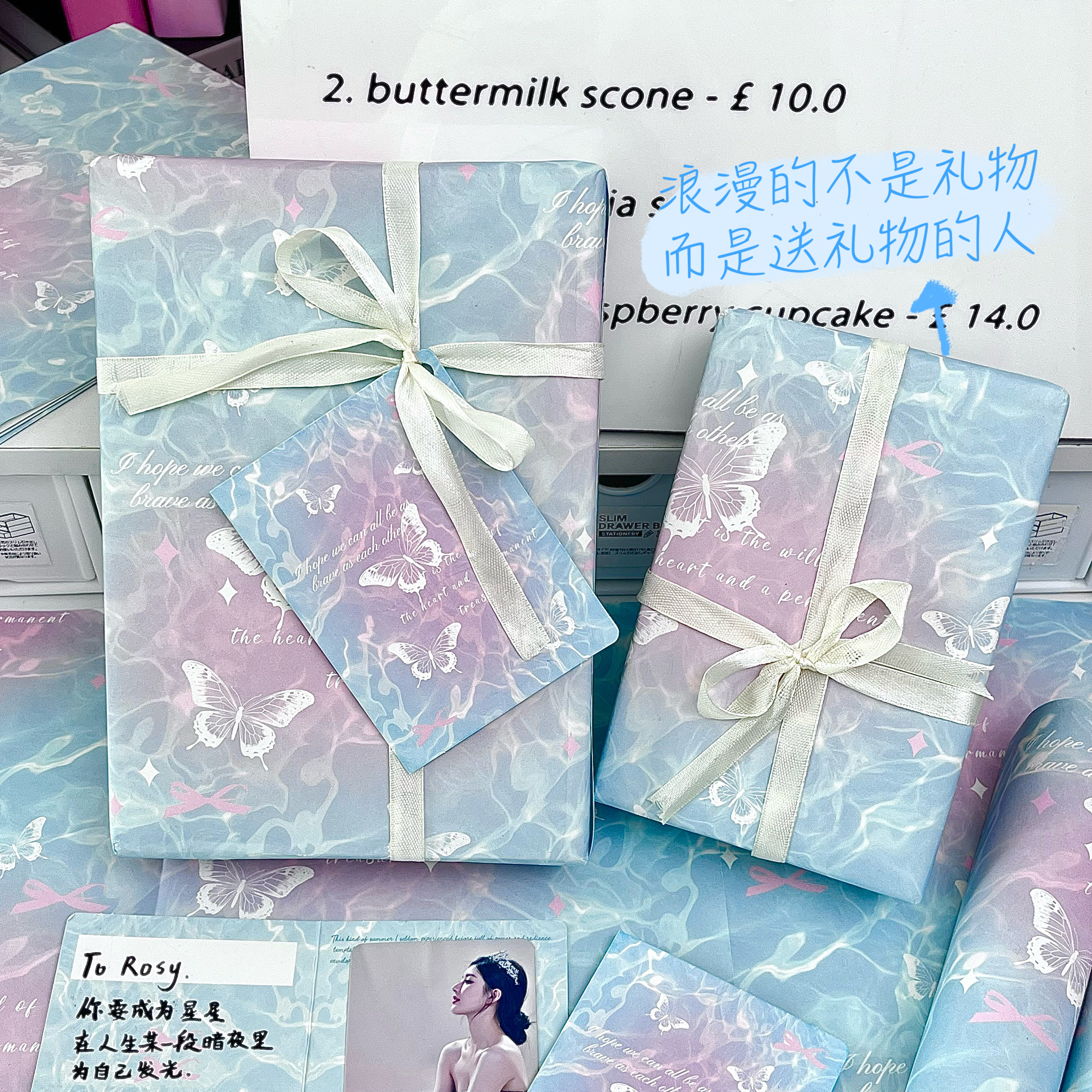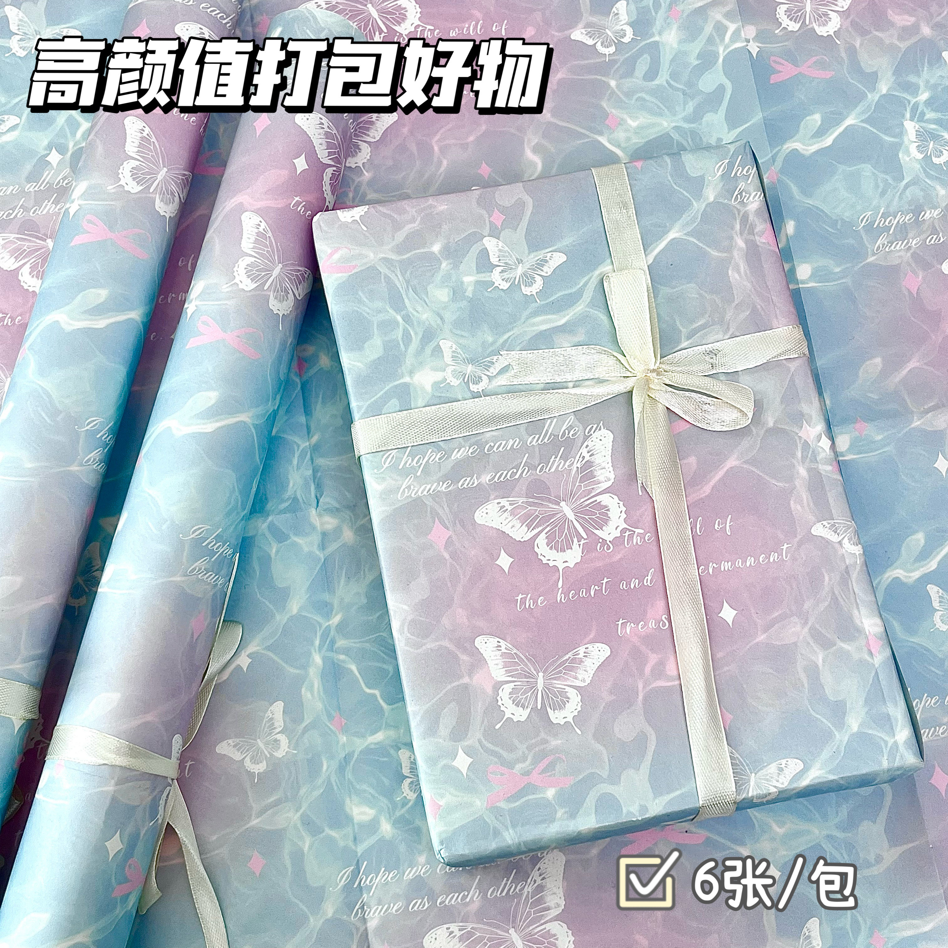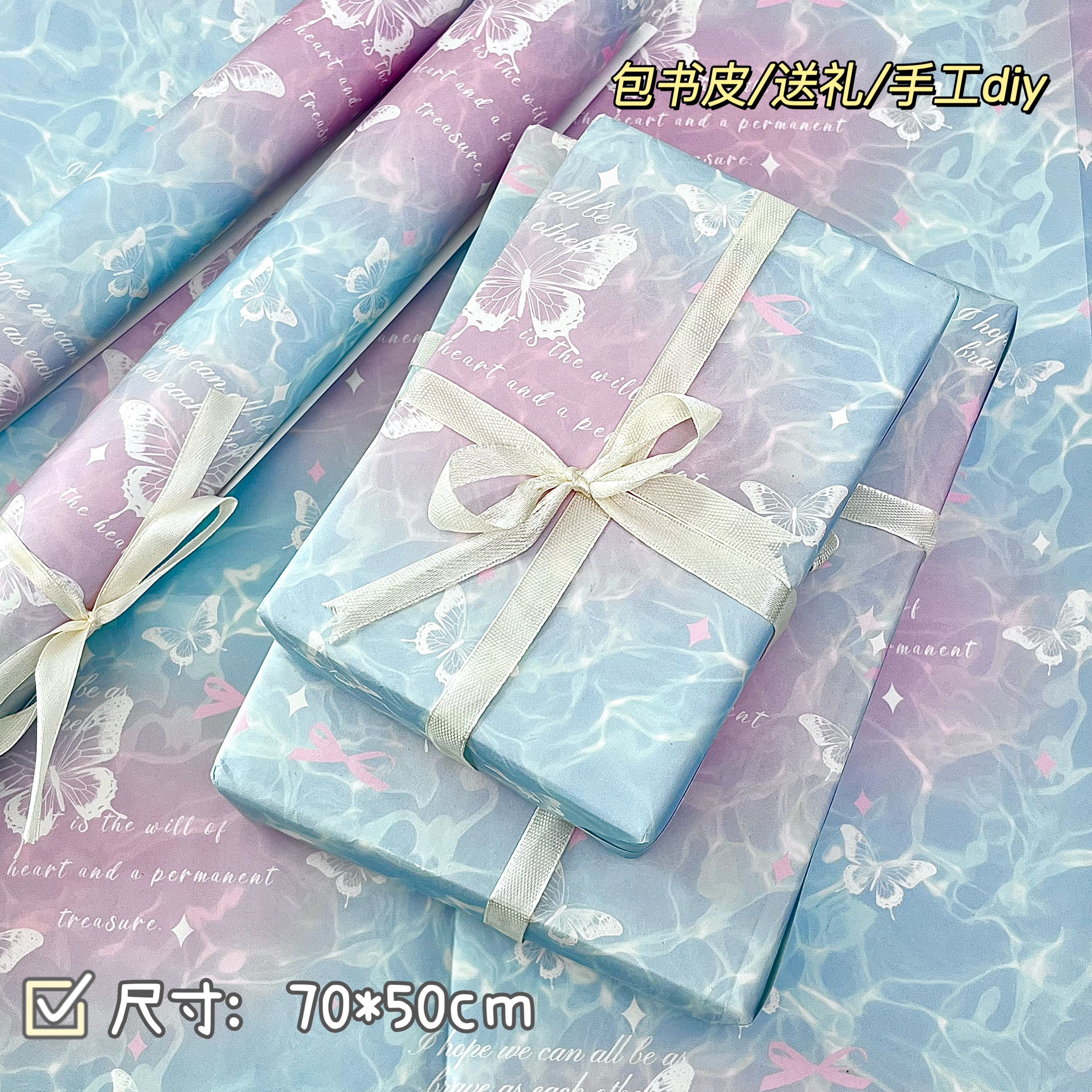 高颜值水波纹蝴蝶浪漫包装纸礼盒手工diy生日礼物包装纸ins装饰纸