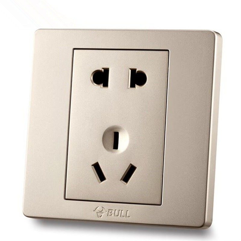 公牛86型暗装插座二三插五孔三孔单双控开关电视电脑面板G32金色