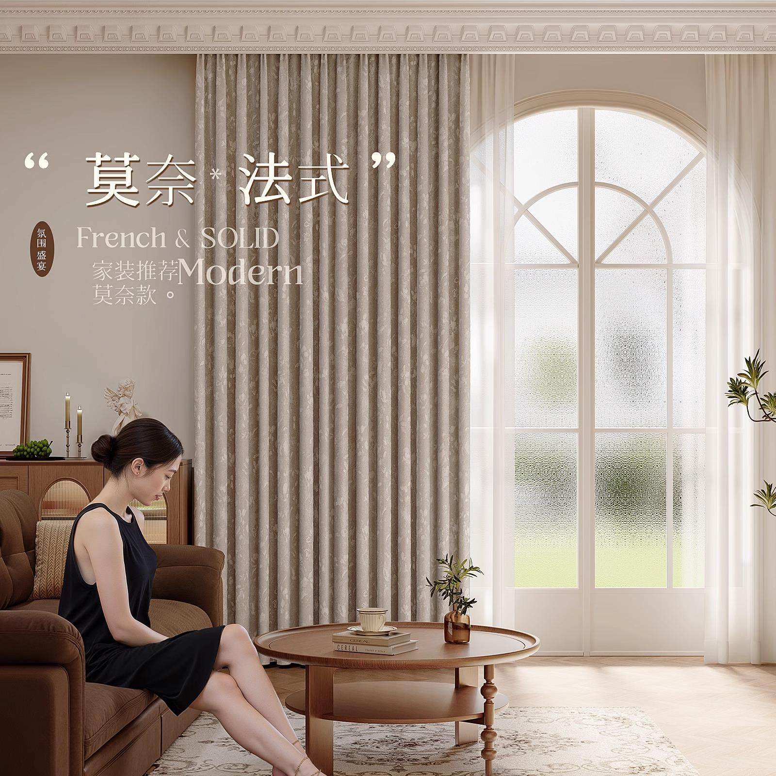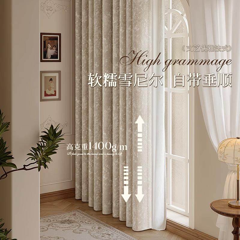 绍兴柯桥法式中古风窗帘雪尼尔提花全遮光2024新款客厅卧室全遮光