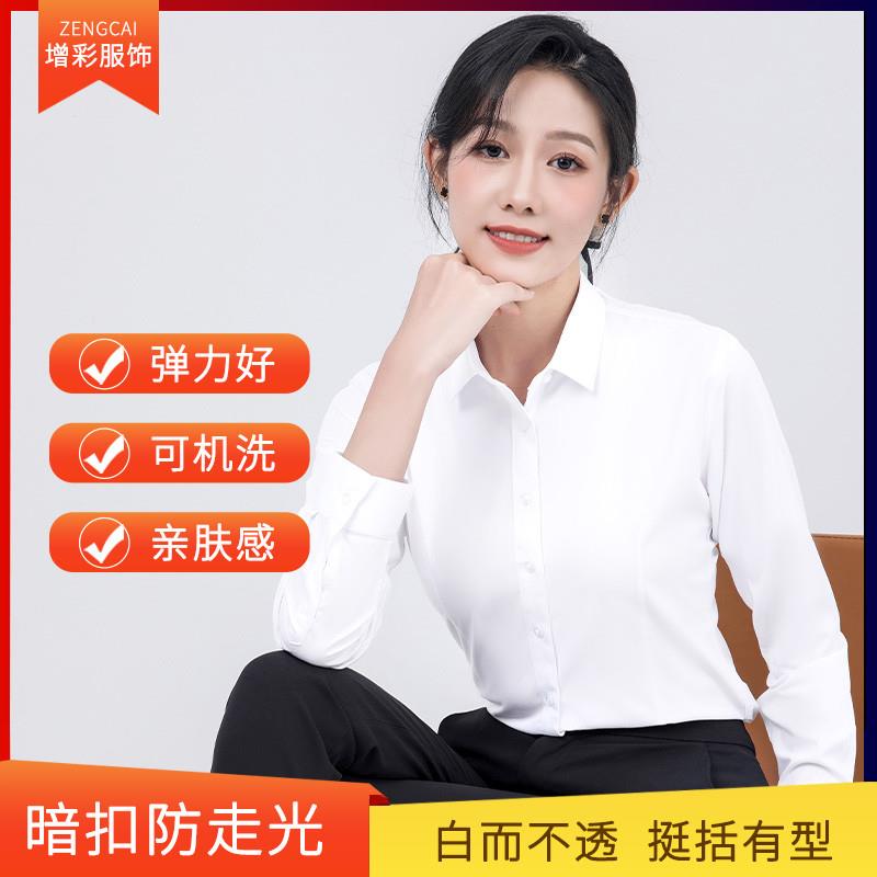 白衬衫女长袖春夏抗皱韩版衬衣正装职业工装工作服气质V领大码