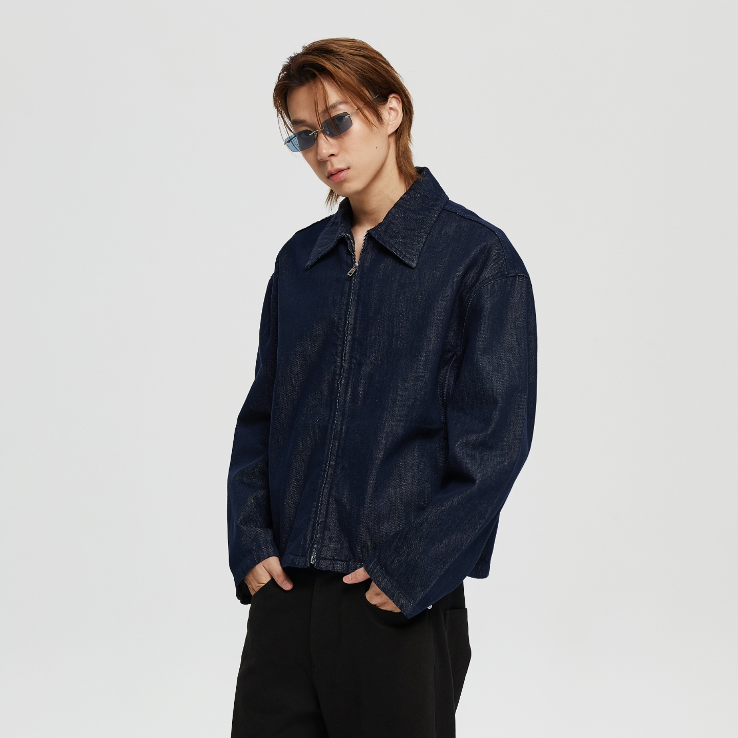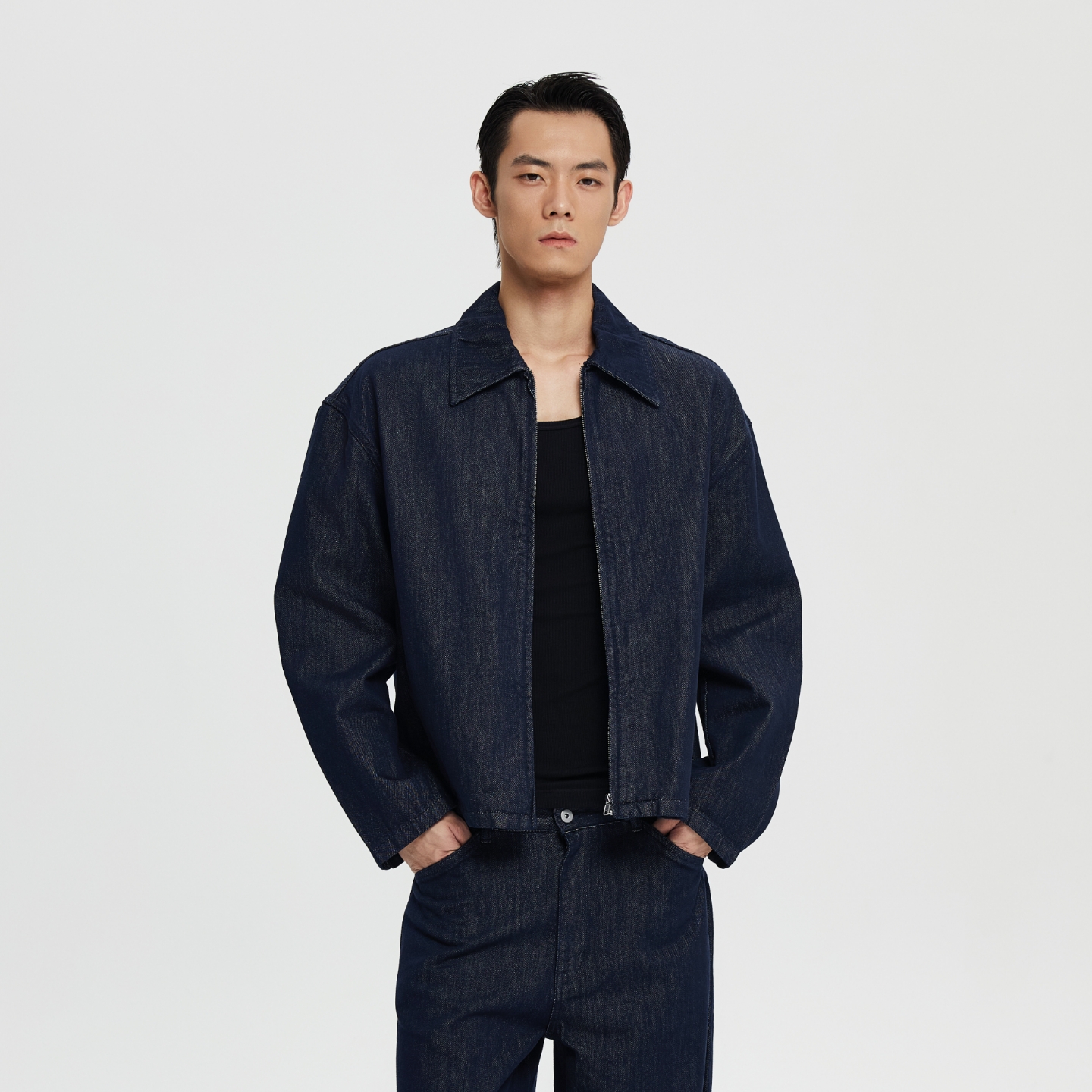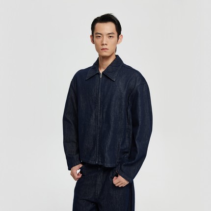 Oneup美式复古高级牛仔夹克休闲宽松重磅原牛工装拉链外套男秋冬