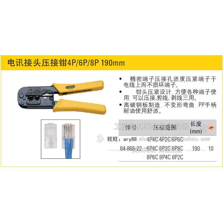 史丹利电讯接头压接钳4 6 8口网络钳/剪线/剥线84-866-22/473/865