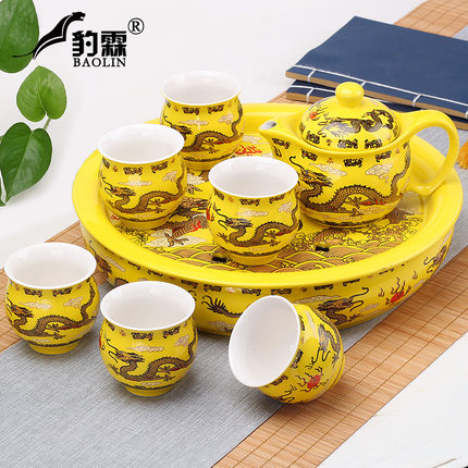 隔热功夫茶具套装家用陶瓷泡茶杯茶壶茶盘简约现代中式青花瓷茶台