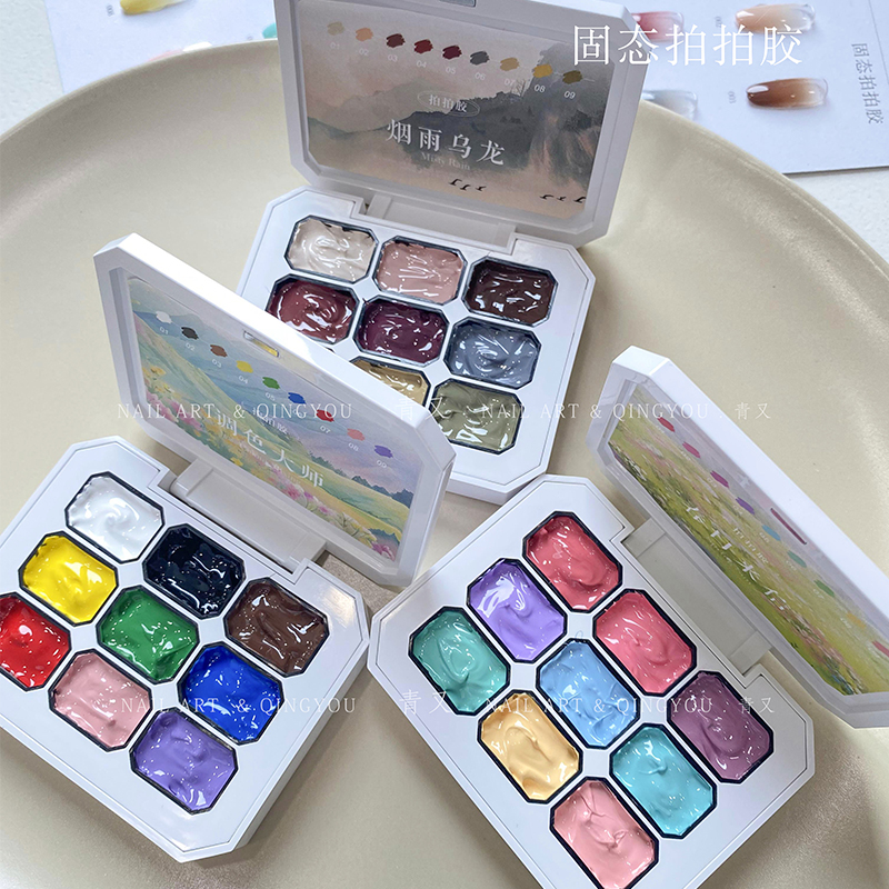 青又九宫格拍拍胶 网红新款流行色固态胶彩绘渐变免洗指甲光疗胶