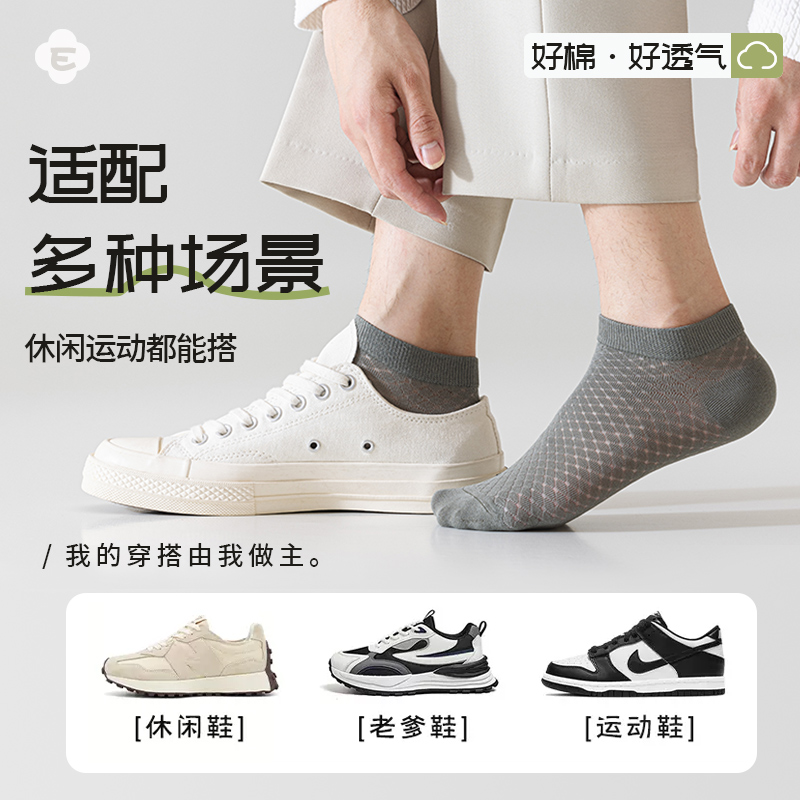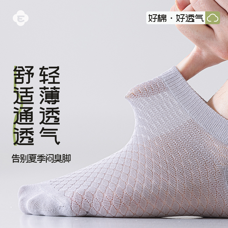 袜子男款夏天短袜纯棉网眼透气抗菌防臭吸汗运动男袜夏季男士船袜