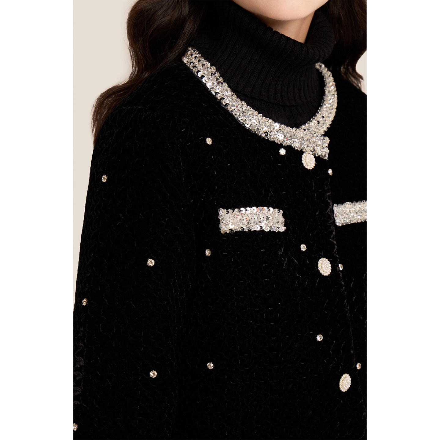 Amybaby女童套装冬季2025新款miu系千金亮片小香风外套半身裙