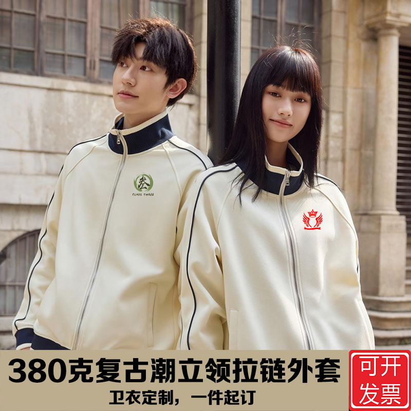 复古潮棉撞色立领拉链外套卫衣定制LOGO工作服班服印字广告衫刺绣