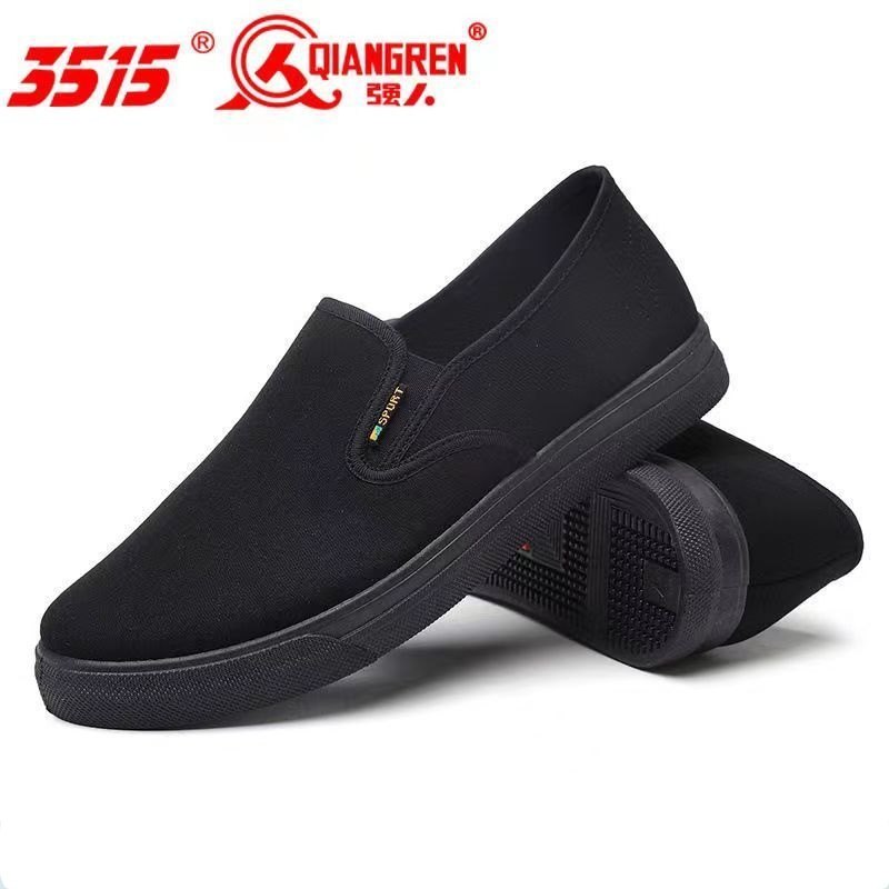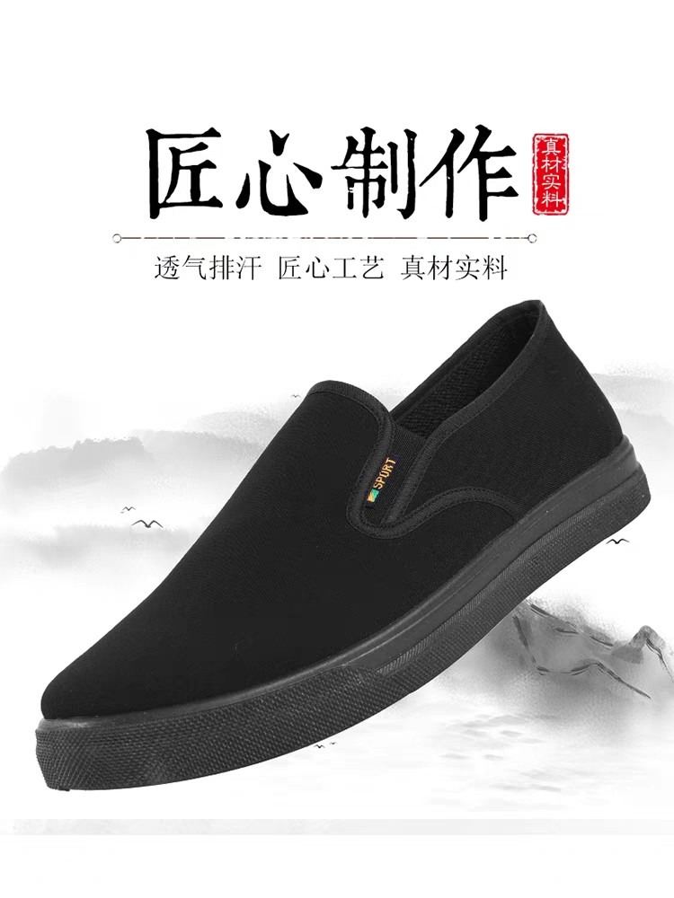强人冬季棉黑布鞋休闲老北京男女款防滑透气耐磨老人一脚蹬爸爸鞋