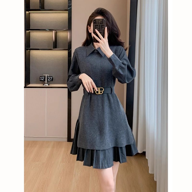秋季套装女2025新款大码女装时尚显瘦高级感针织马甲连衣裙两件套