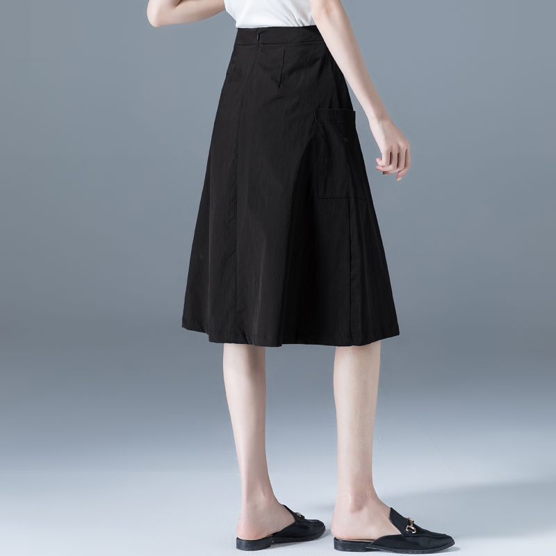 清仓黑色a字半身裙女夏季薄款裙子新款小个子口袋中长款工装裙夏