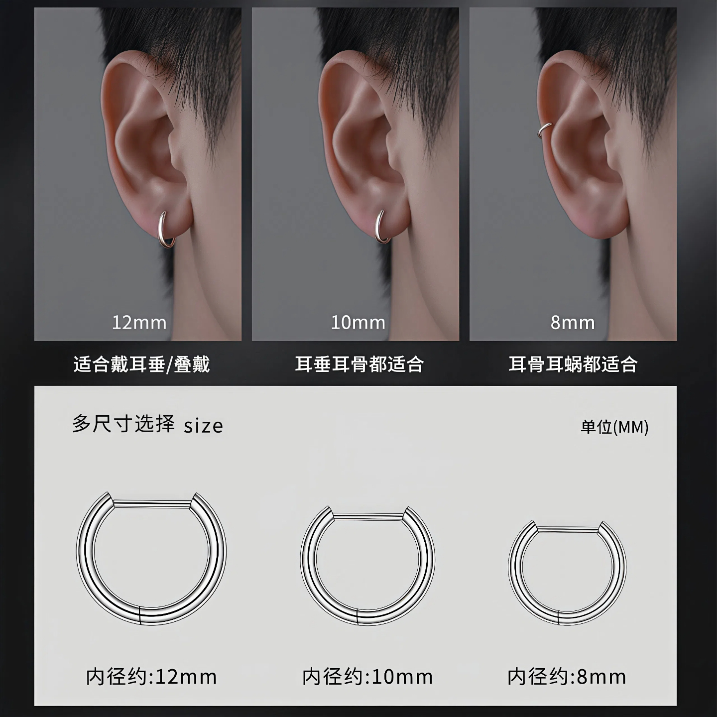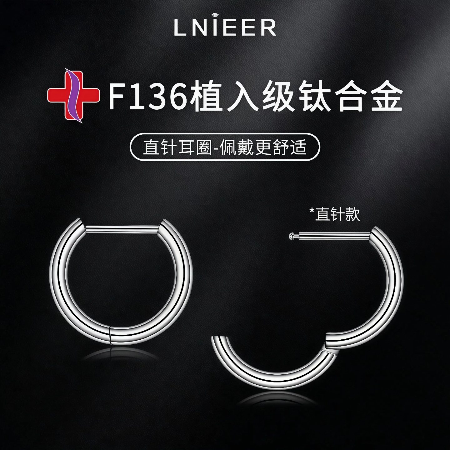 F136钛合金耳圈男款医用植入级D型直针耳环养耳洞素圈耳钉耳骨圈