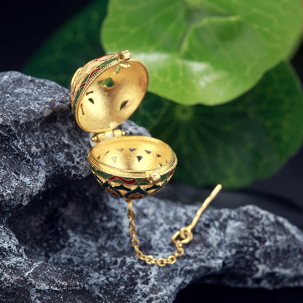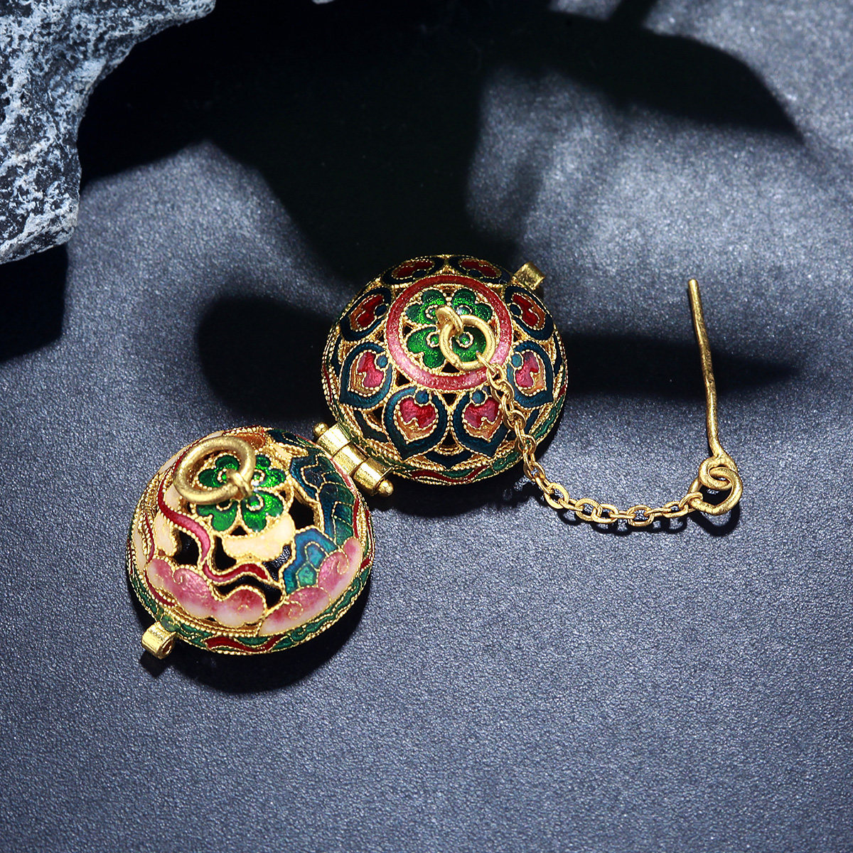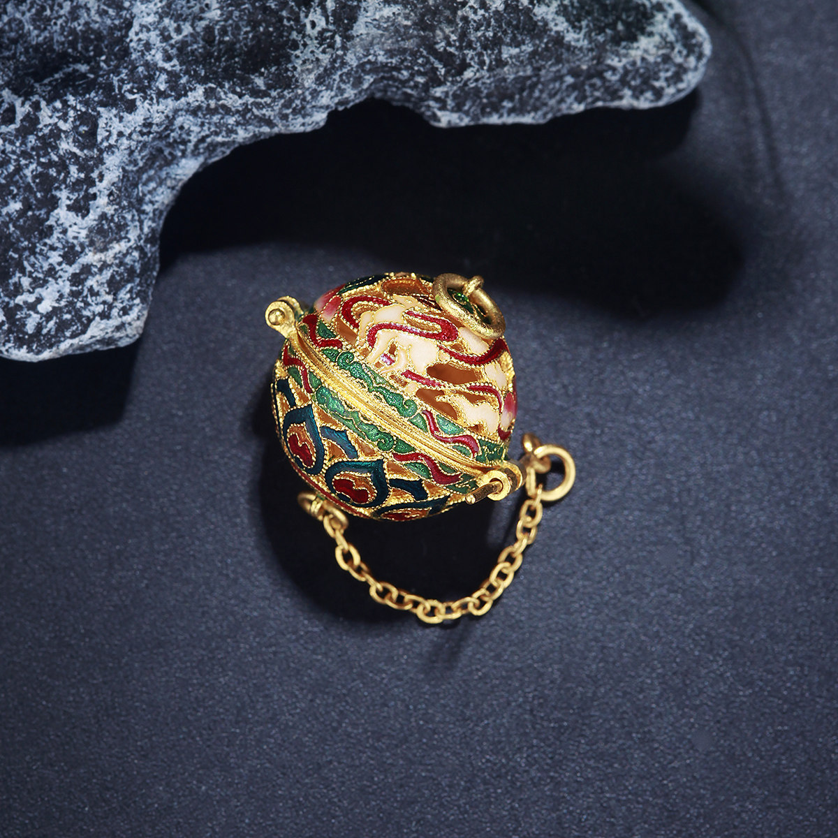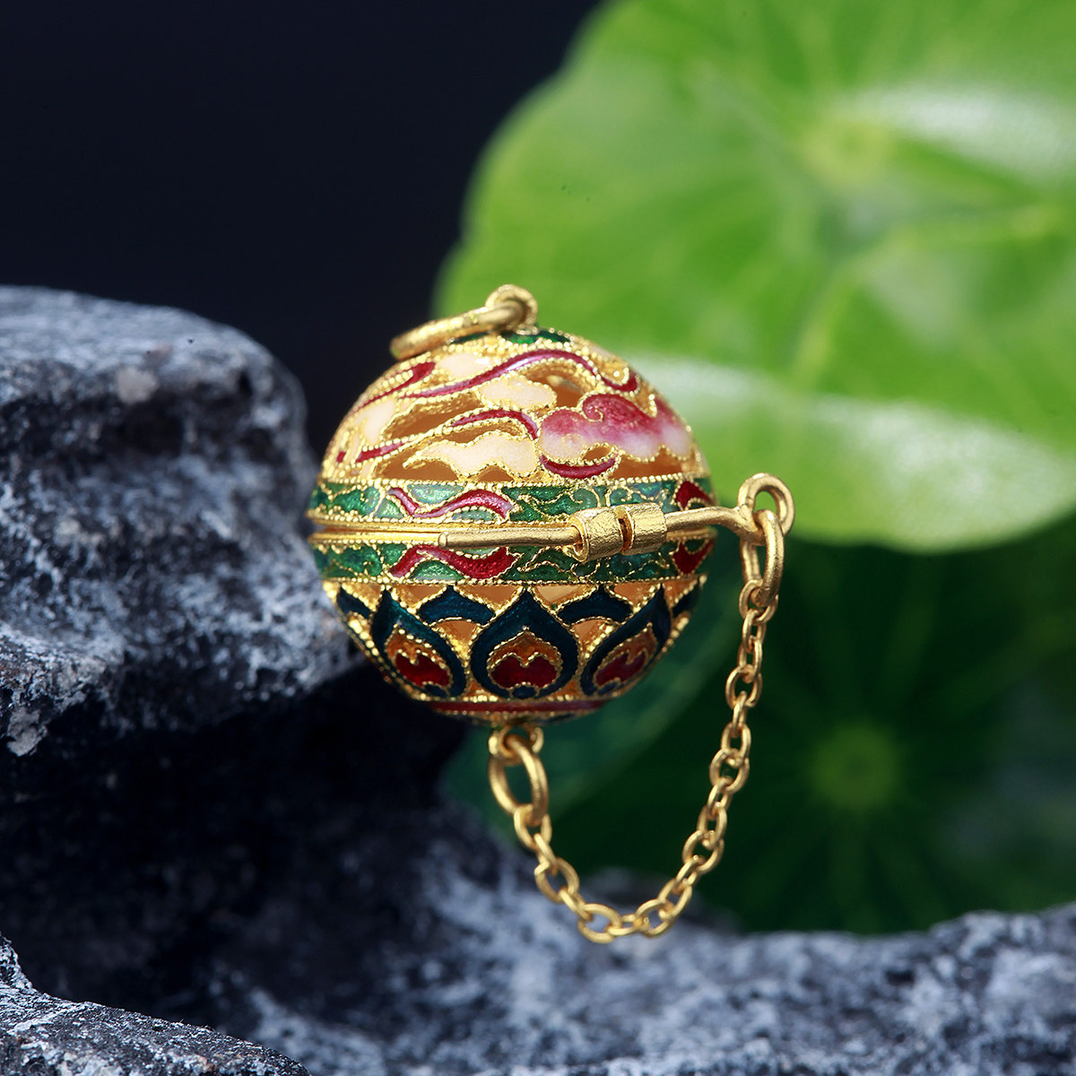 吉盟珠宝古法黄金吊坠女九色鹿香囊球高温烧蓝足金挂坠新中式国潮