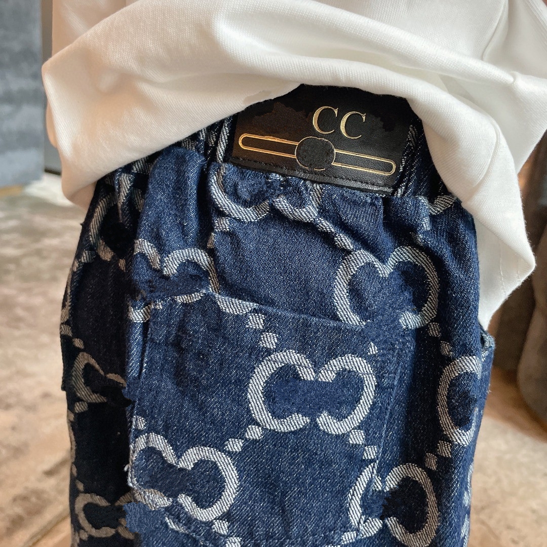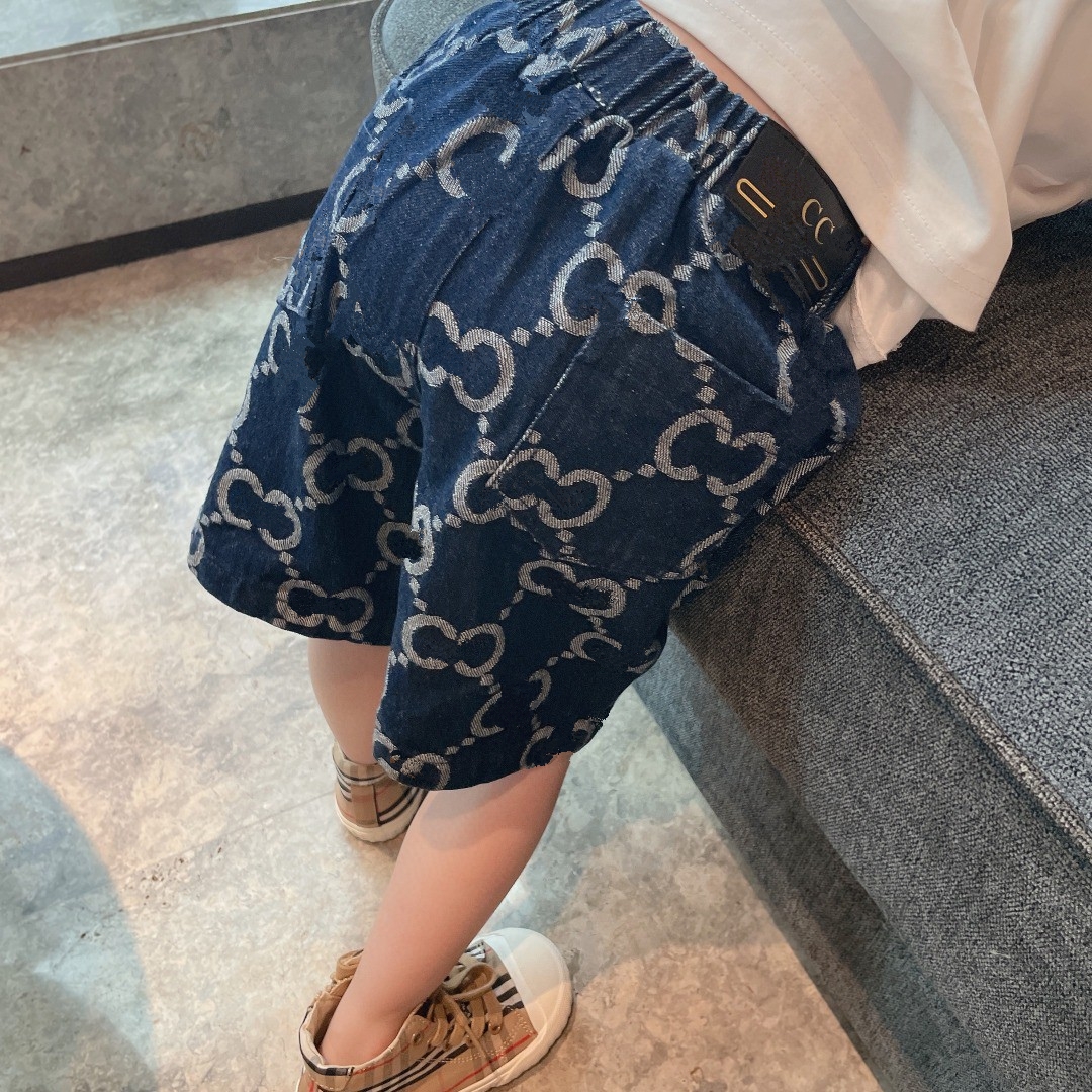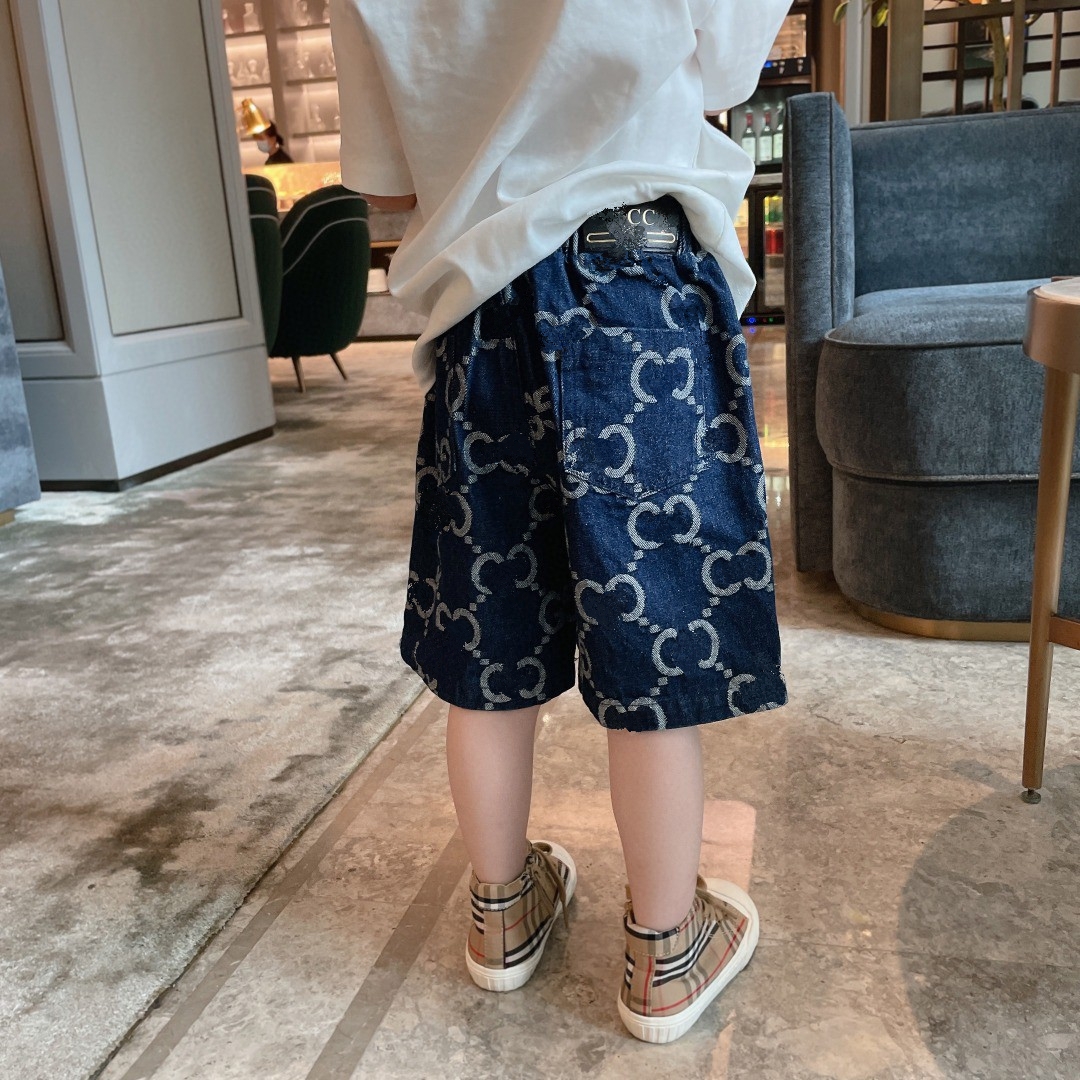 男童复古满印短裤牛仔薄款半裤儿童透气五分裤夏季新款2025中大童