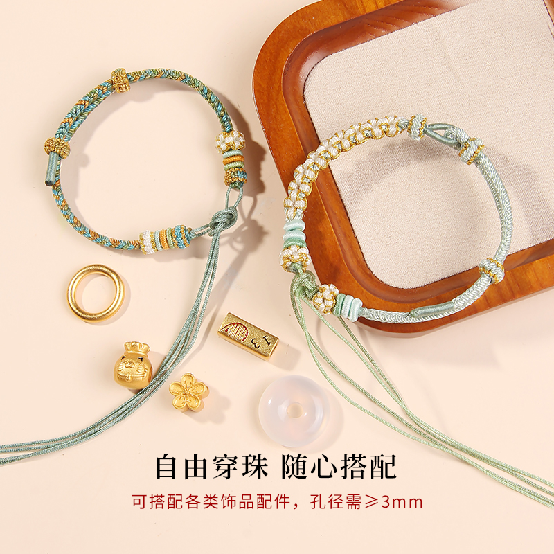 五帝钱平安扣手绳编织绳情侣手链女手工半成品可穿领花转运珠礼物