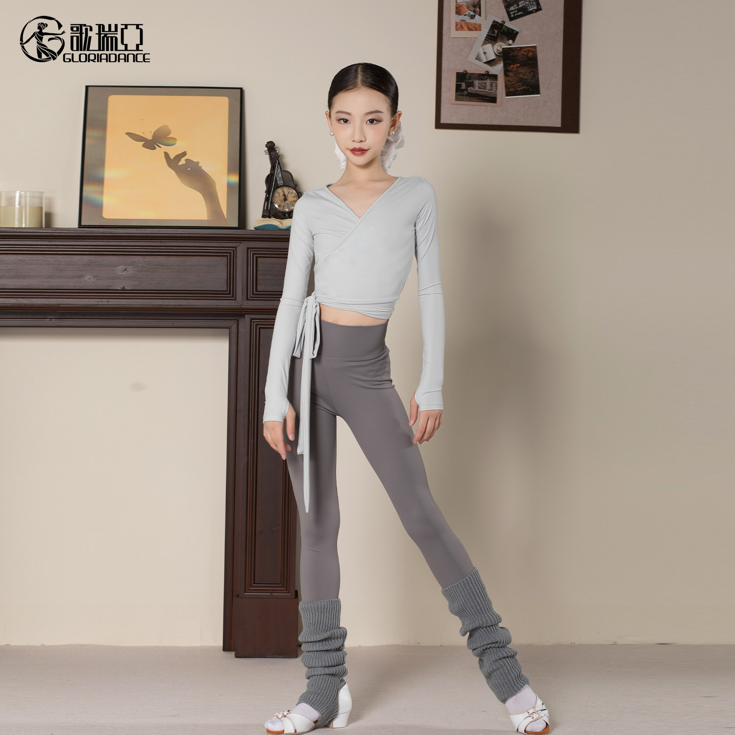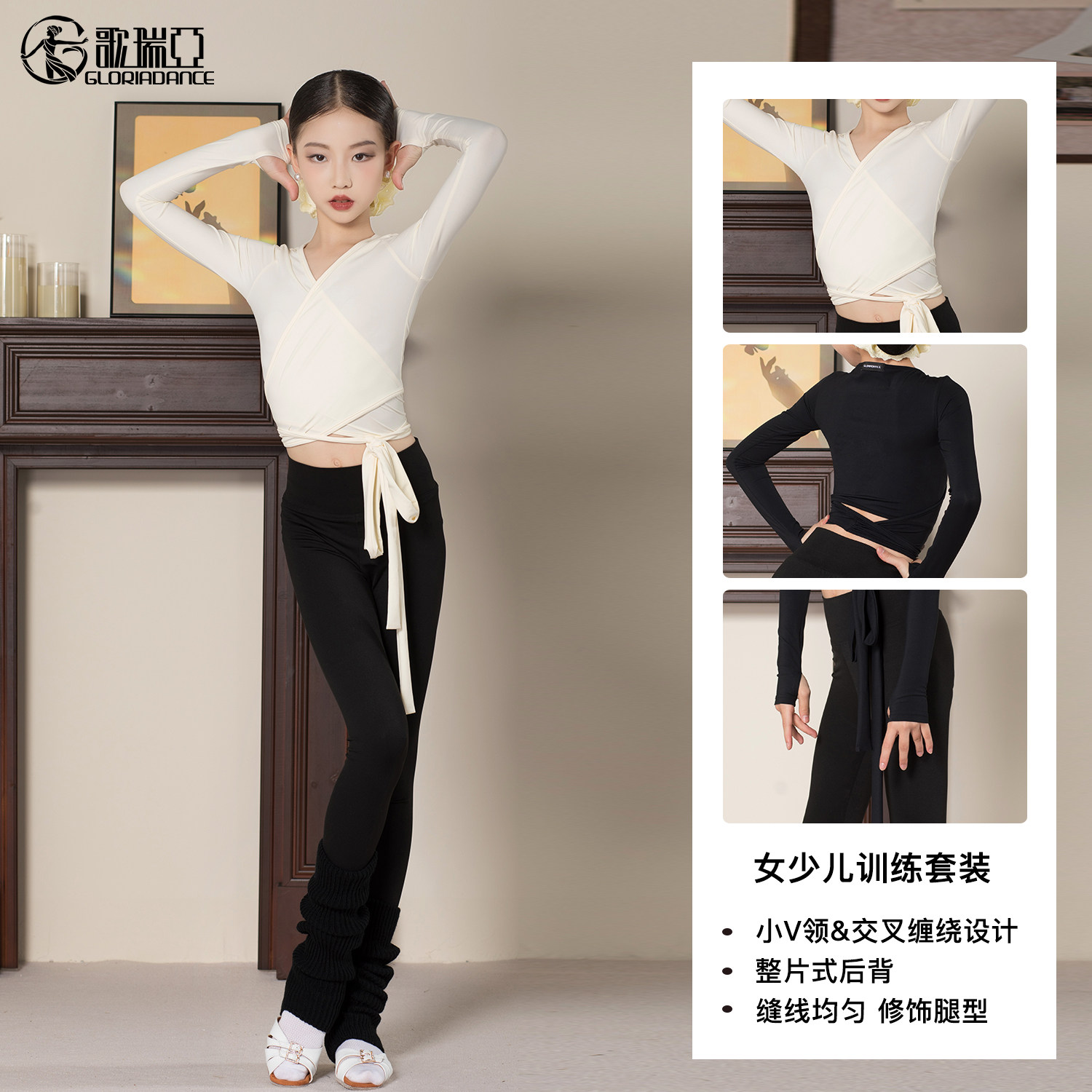 歌瑞亚拉丁舞服2025新款女童练功服长袖系带上衣长裤舞蹈训练套装