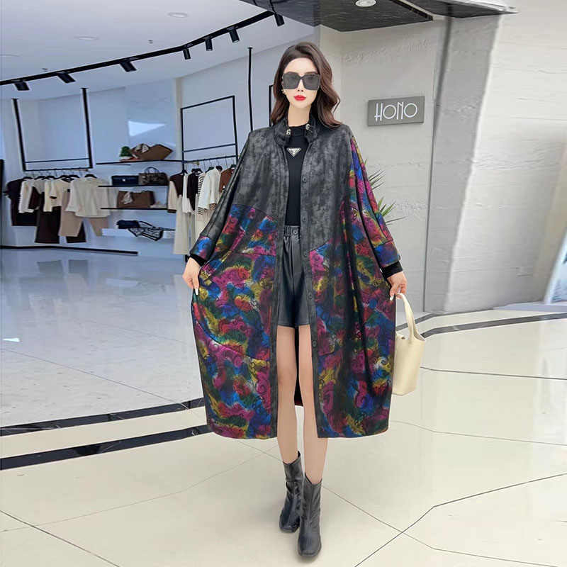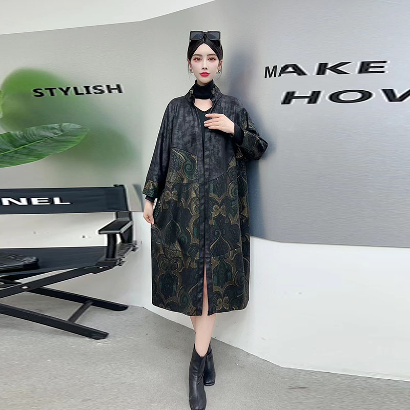 蝙蝠袖立领中长富态宽松遮肉风衣