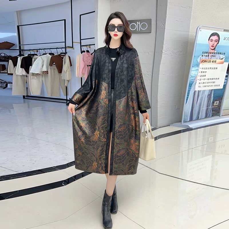 鹿皮绒风衣外套女中长款春秋新款宽松大码高端气质妈妈装花色大衣