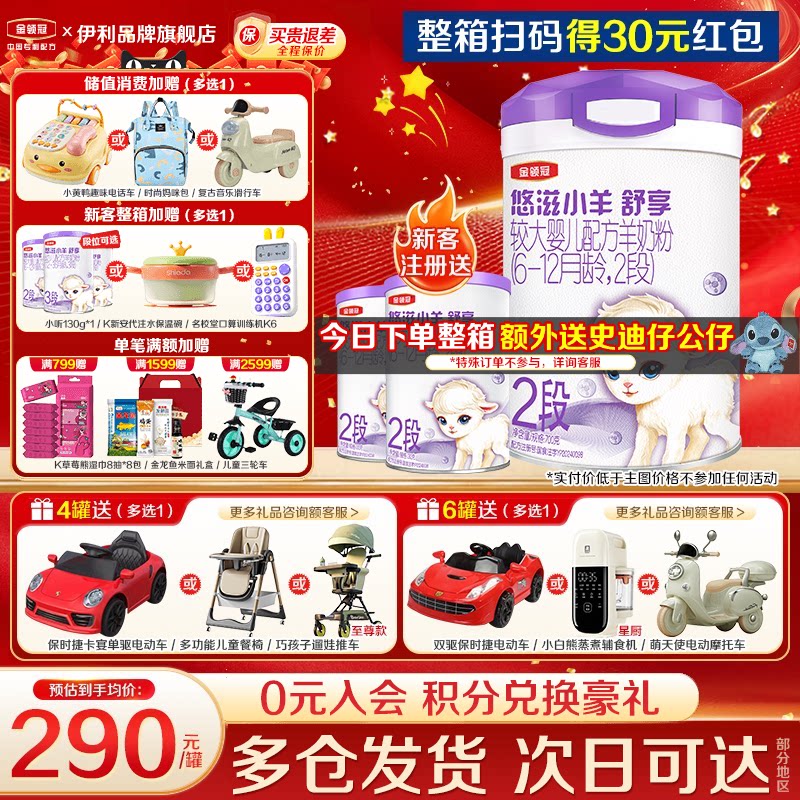 伊利金领冠悠滋小羊舒享2段6-12个月婴幼儿低敏羊奶粉700g*1罐
