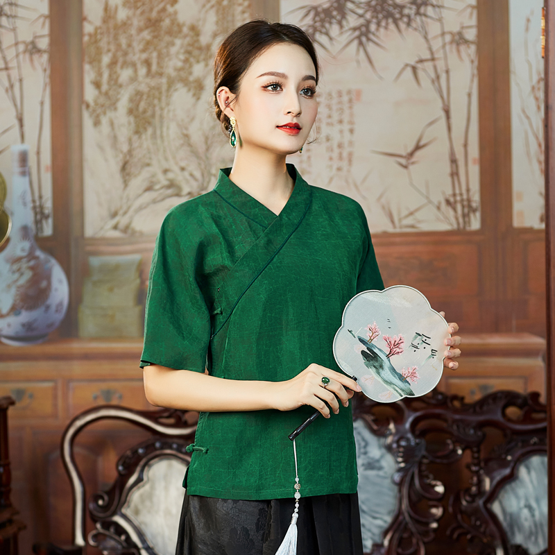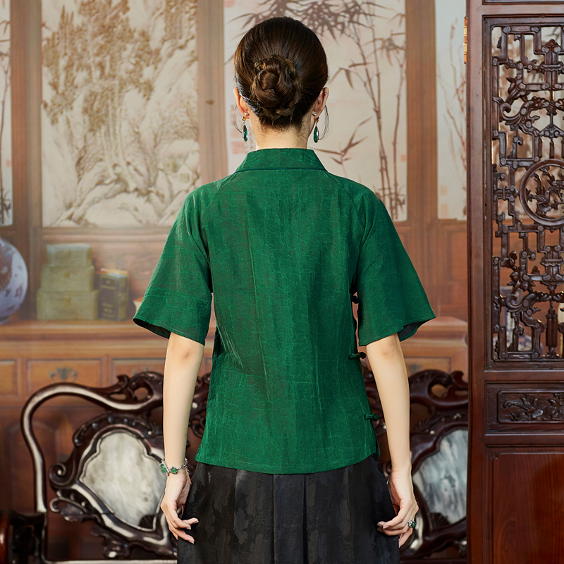 华族经典龟裂纹香云纱夏季高端连肩袖复古中国风唐装短款旗袍上衣