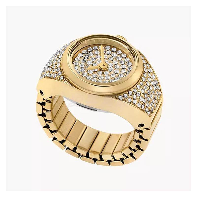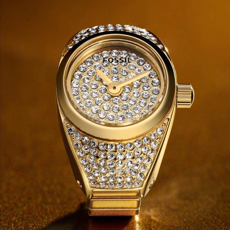 代购fossil化石三针水晶可爱金色不锈钢戒指手表