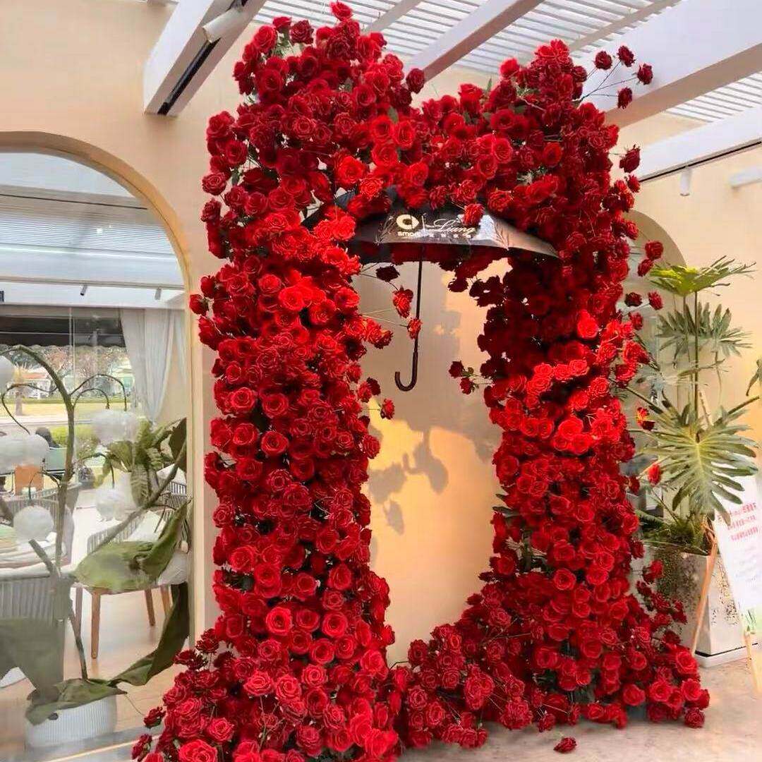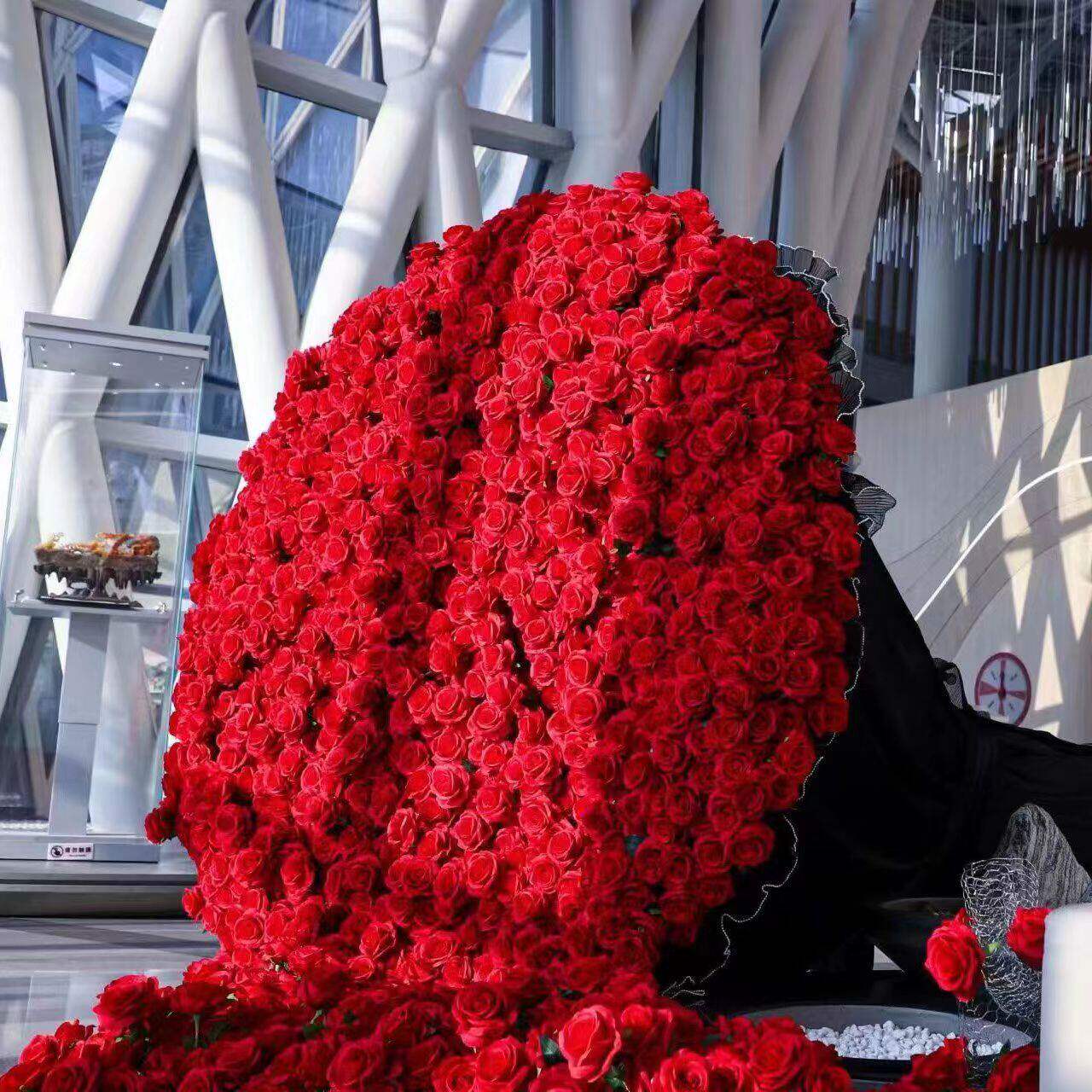 玫瑰瀑布商场引流彷真布置背景装饰网红玫瑰花打卡花墙情人节拍照